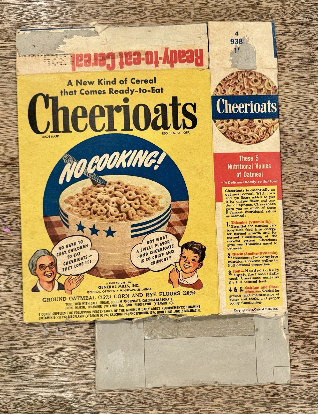 Vtg 40s CHEERIOATS Cereal BOX pre-Cheerios GENERAL MILLS 1941