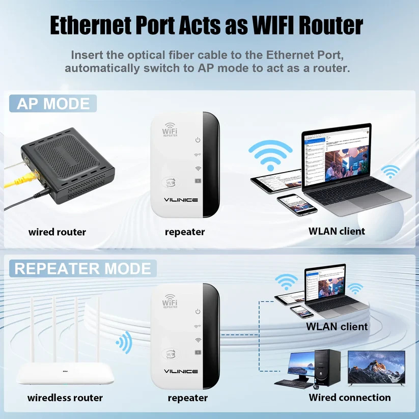 Network Extender, AC1200 Dual-Band Wifi Extender,Coverage up to 3000 Sq Ft, 2 Pa