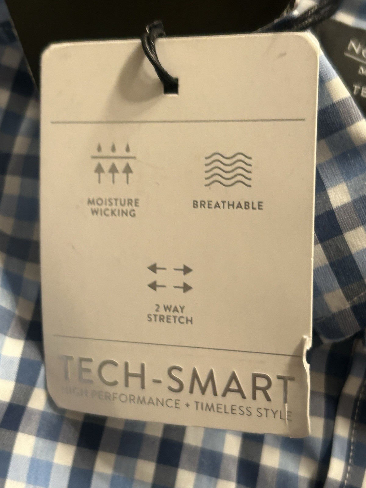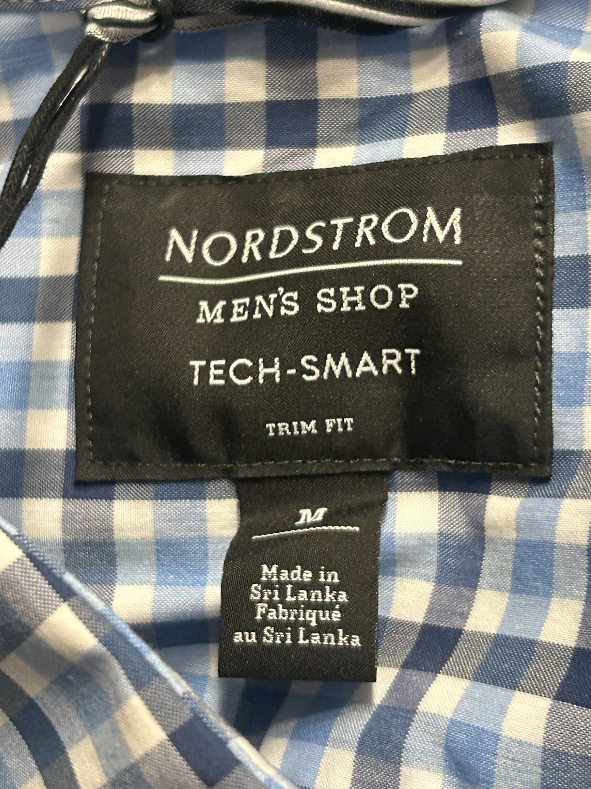 NWT Men's Nordstrom Button Down Tech Smart Blue Check Trim Fit Shirt Size Medium