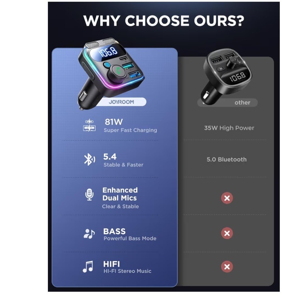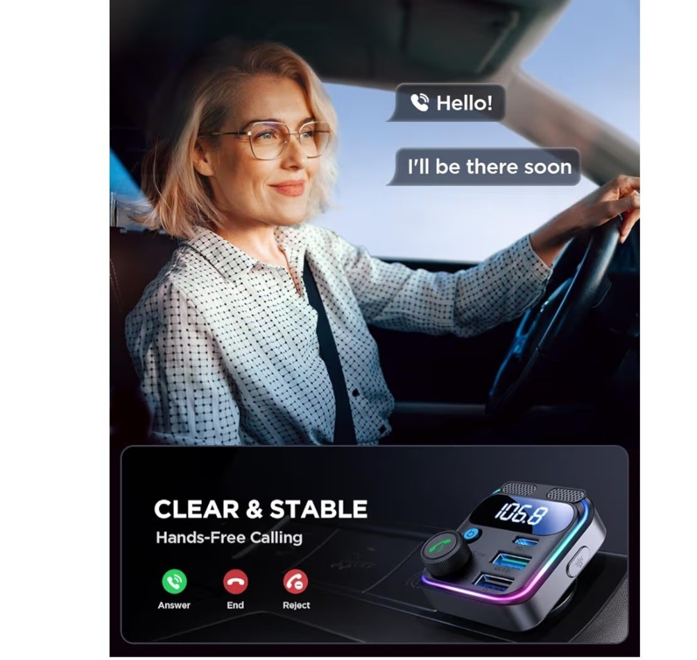Bluetooth 5.4 FM Transmitter Car Adapter 81W PD 45W 36W Dual Mics ...