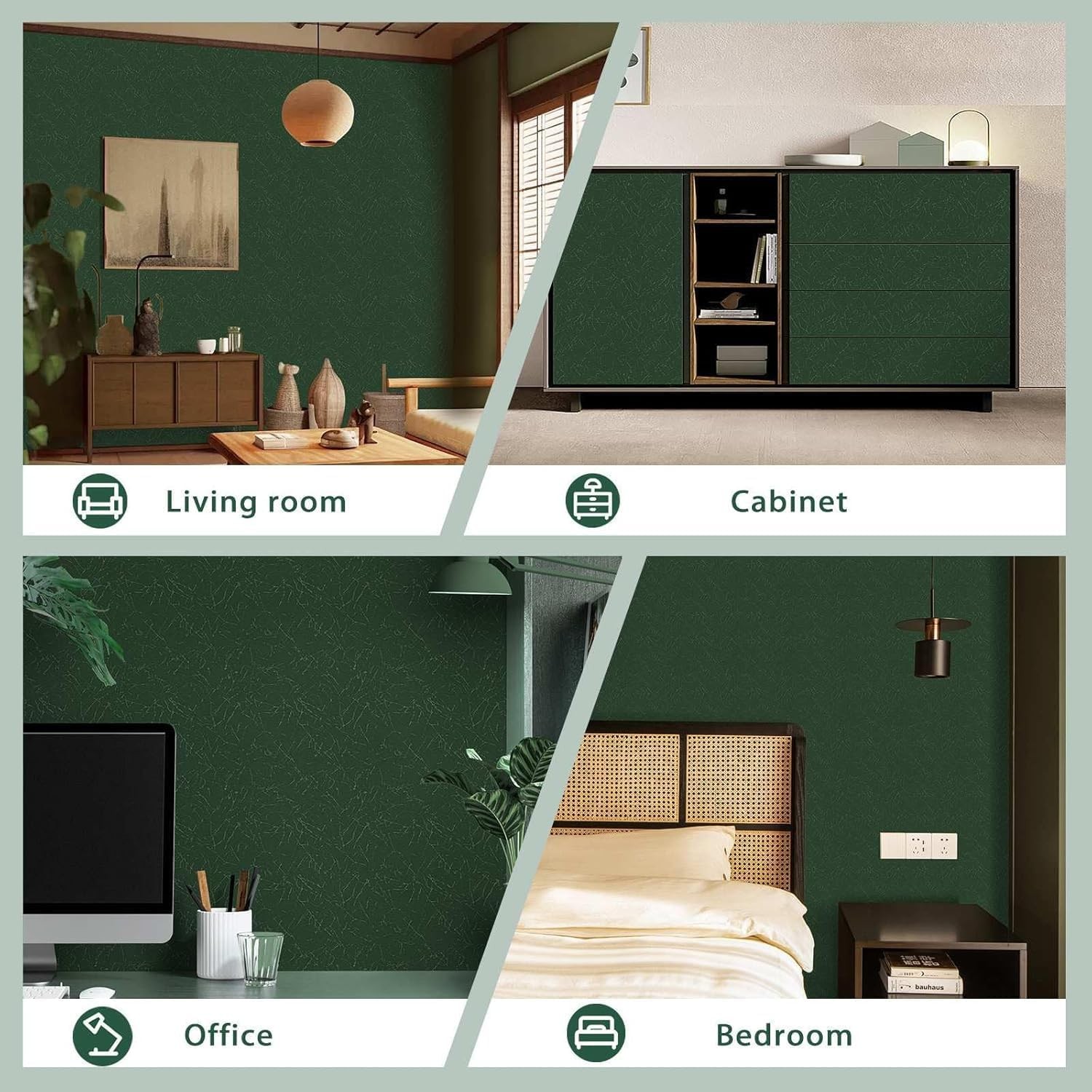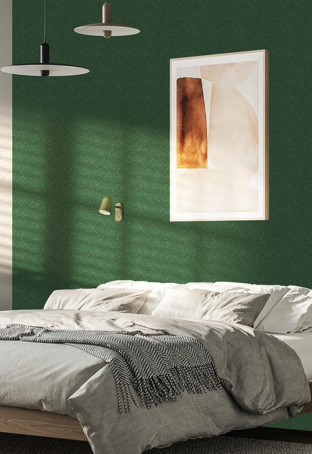 Abyssaly Dark Green Peel and Stick Wallpaper Silk Texture Embossed Removable