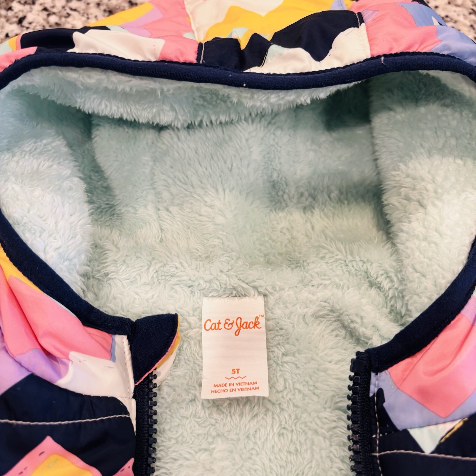 как выглядит Cat Jack Zigzag Hooded Jacket Fleece - Pink Blue Yellow Winter Coat Size 5T фото