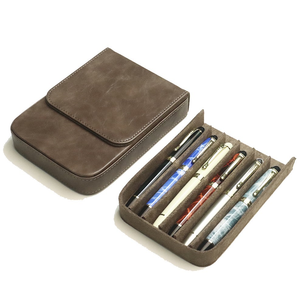 Leather 6 Slots Fountain Pen Case Tray Holder Storage Box Desk Organizer Gift