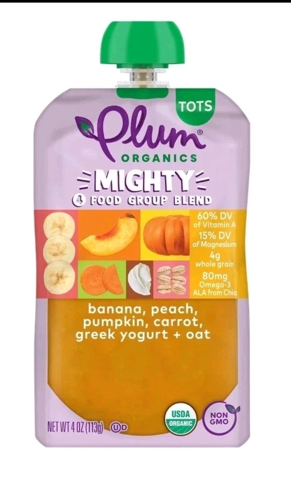 Plum Organics Mighty 4 Toddler Food Banana Peach Pumpkin Carrot Exp 9/26 Sealed