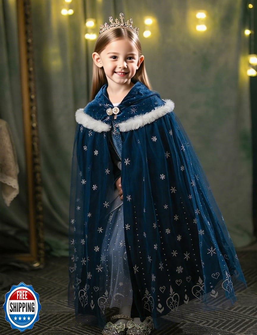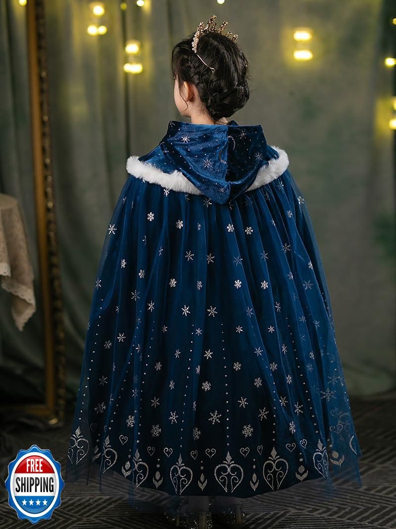 Toddler Girls Elsa Cape Kids Princess Paly Cape Party Warm Hooded