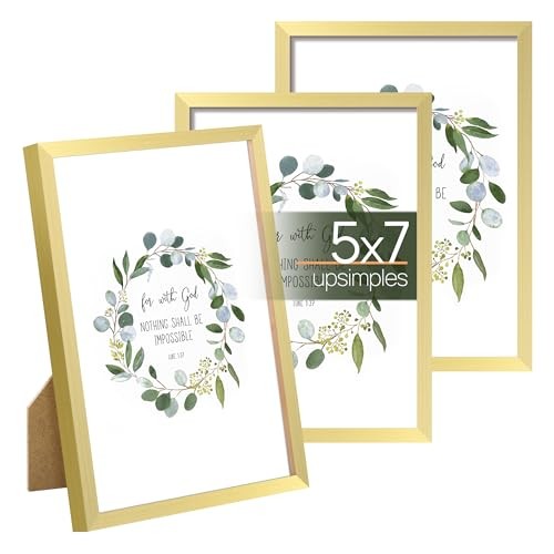 Picture Frame Set of 3, Made of High Definition Glass for 5 x 7 5x7 Gold