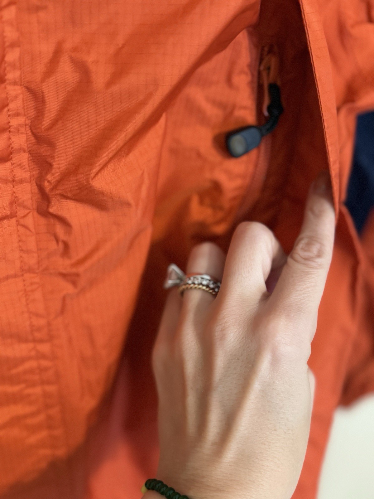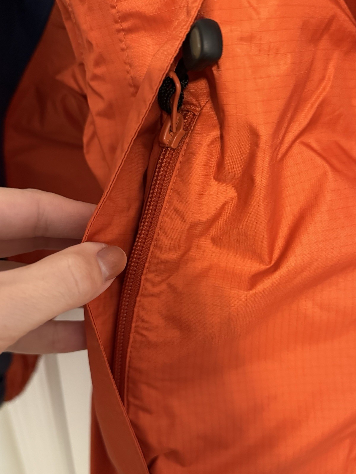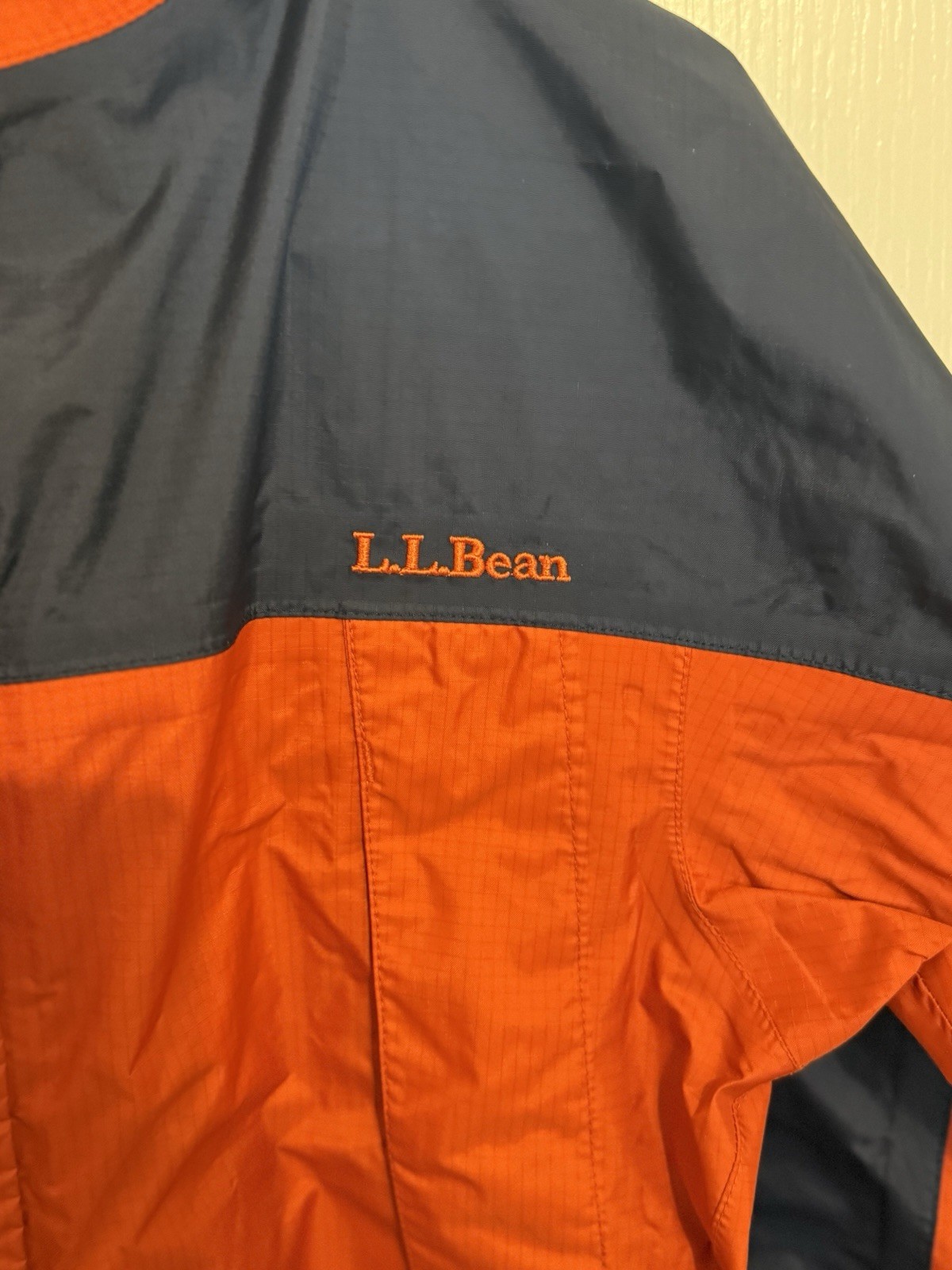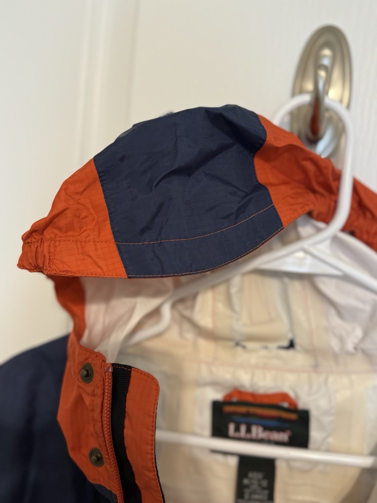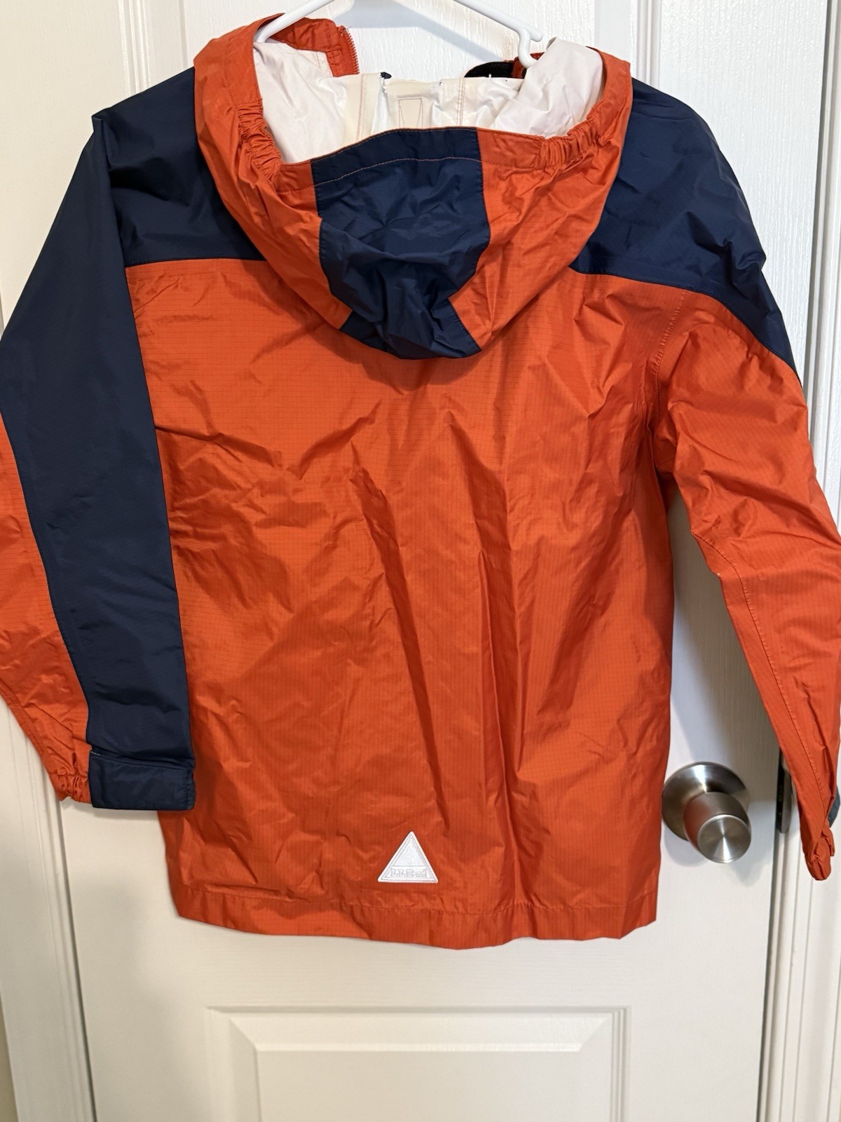 как выглядит LL Bean Orange Navy Lightweight Rain Hooded Jacket Kids 10/12 фото