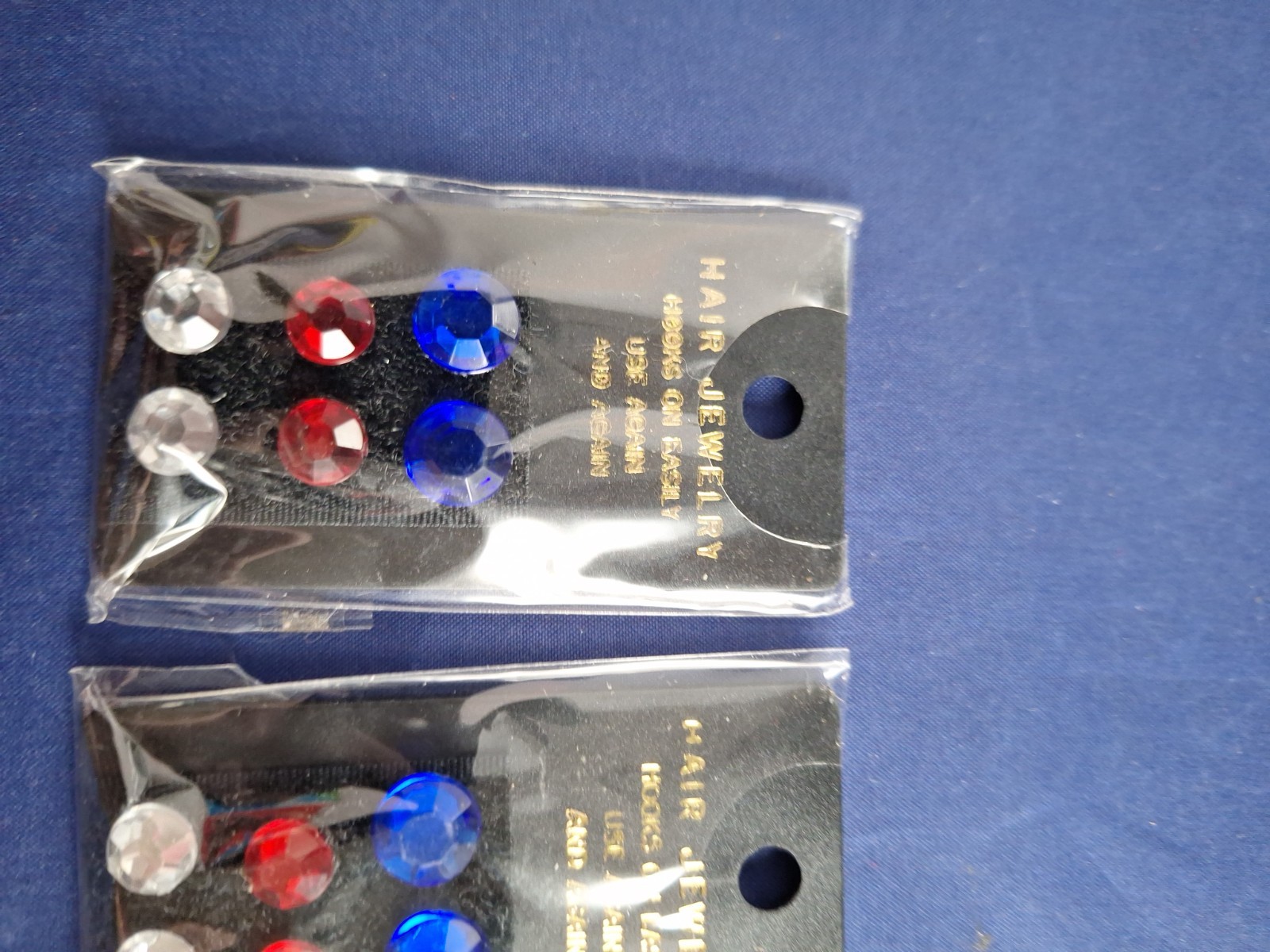 Vtg 1980's Pizzaz Hook On Hair Jewelry 4 Packages Red White Blue Patriotic 2