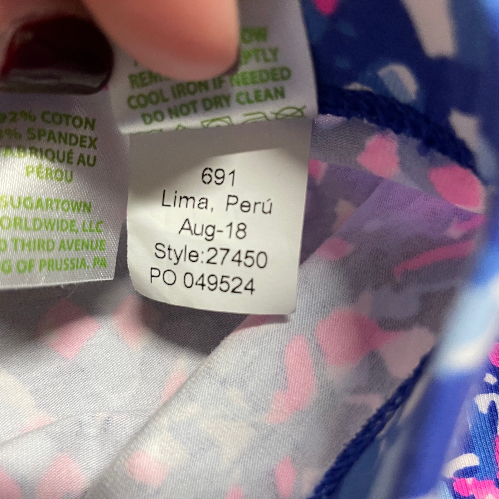 как выглядит Lilly Pulitzer Girls Maia Crop Leggings Blue Pink Diamond NWOT Size XL/12-14 фото