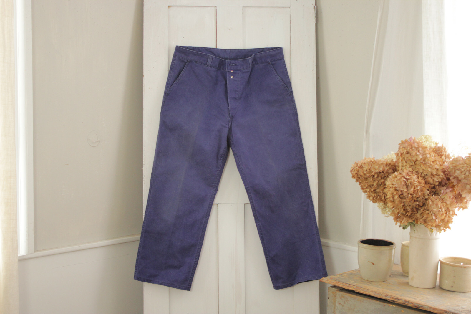 Pants Blue Vintage French cotton travaille bleus Work wear denim 37 inch waist