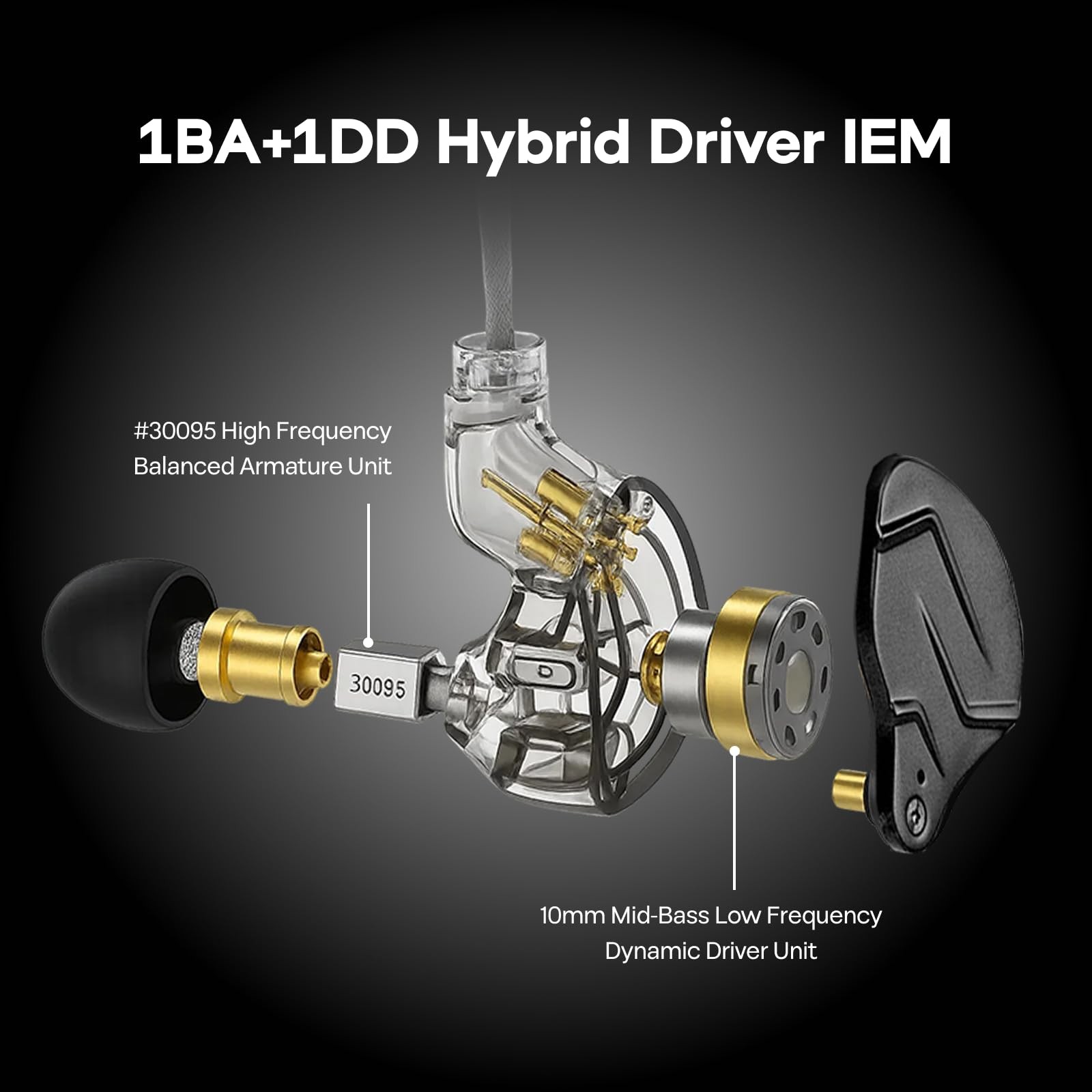 Linsoul KZ ZSN PRO X Dual Driver 1BA 1DD Hybrid Metal Earphones HiFi in-Ear M...