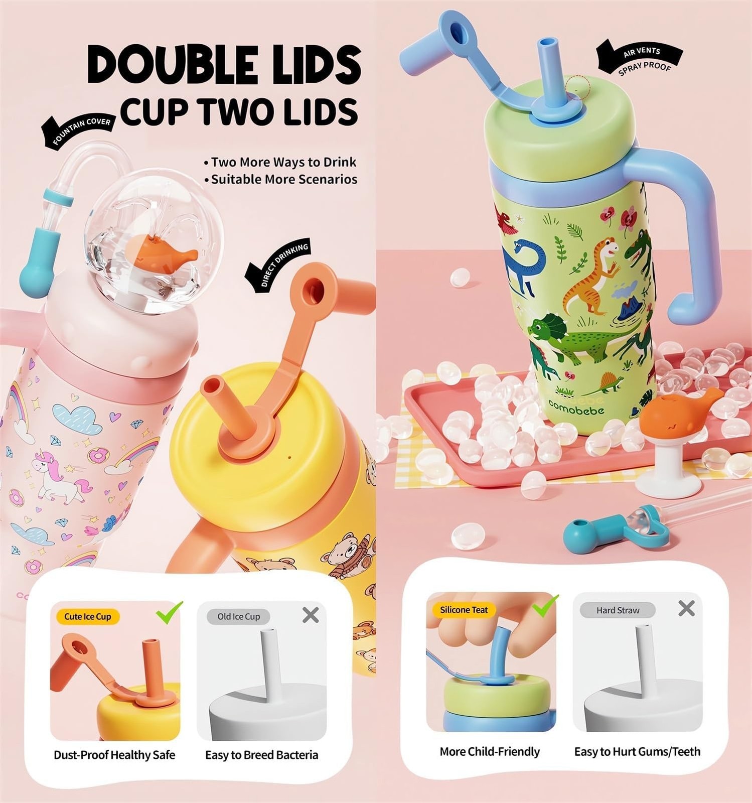 Stainless Steel Whale Fountain Tumbler with Handle, Drinking Cup with Whale S...