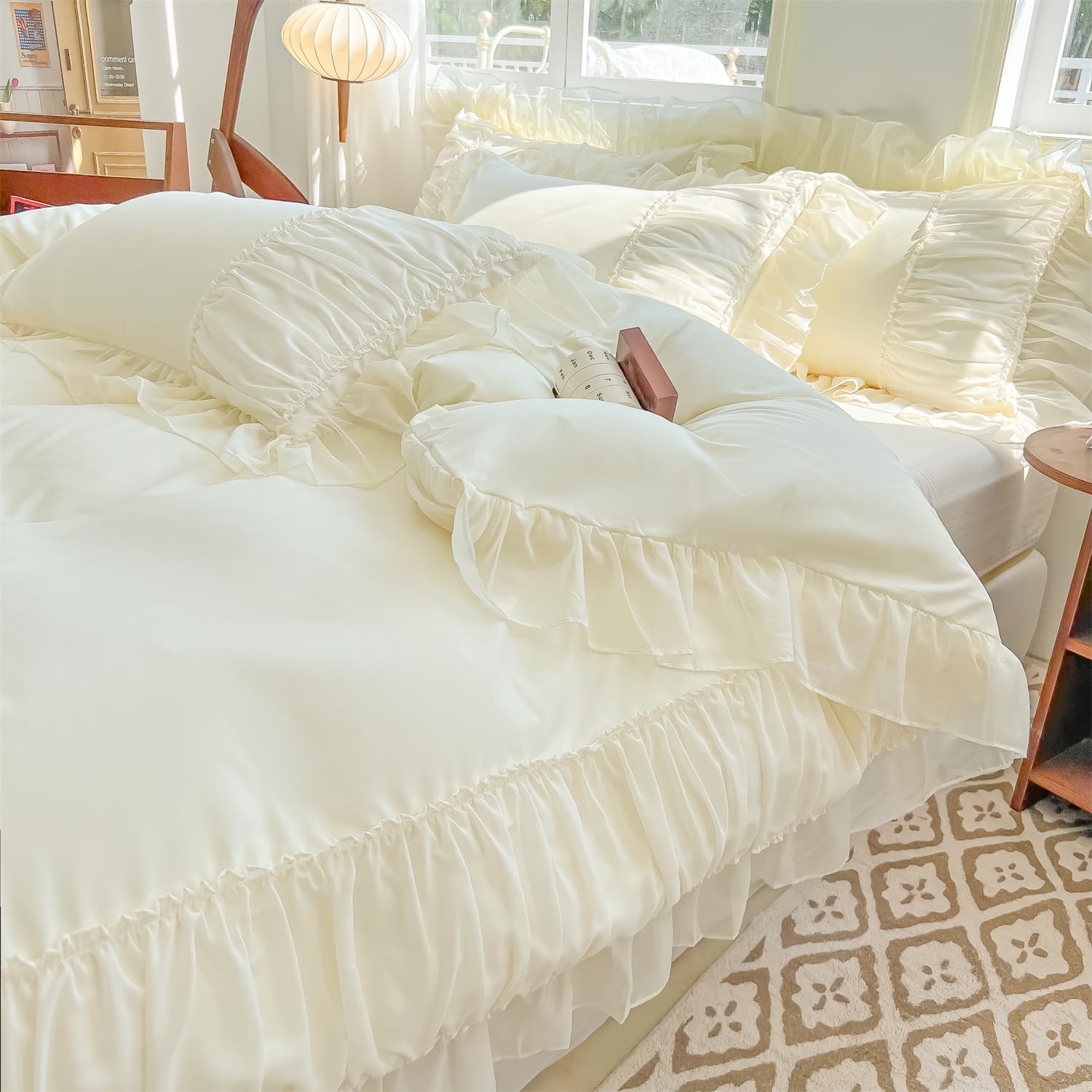 Chic Lace Bedding with Lovely Bow-Romantic Ruffle Duvet Cover Set, 2 Piece Co...