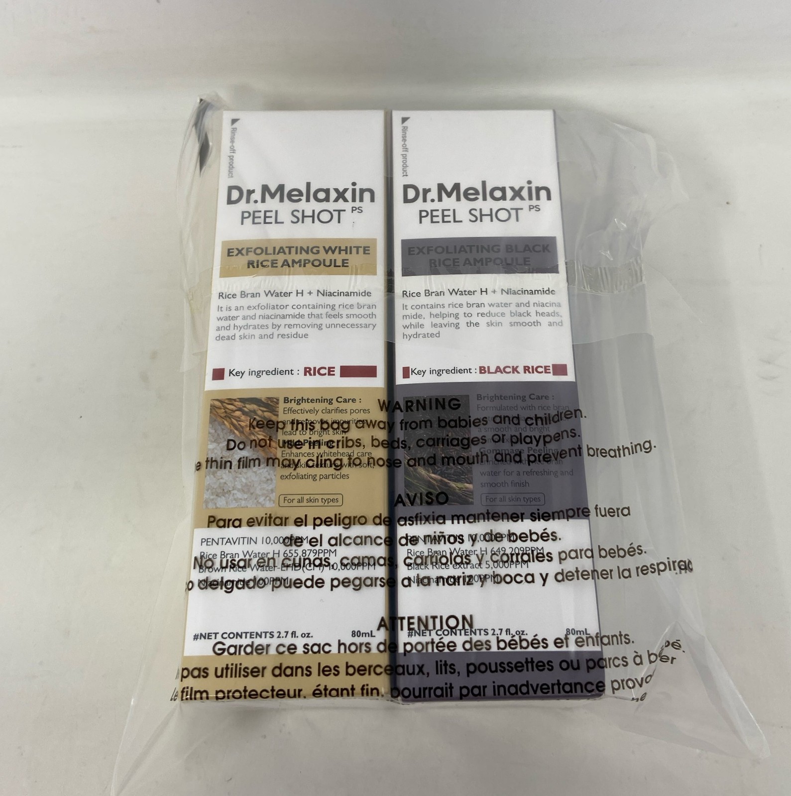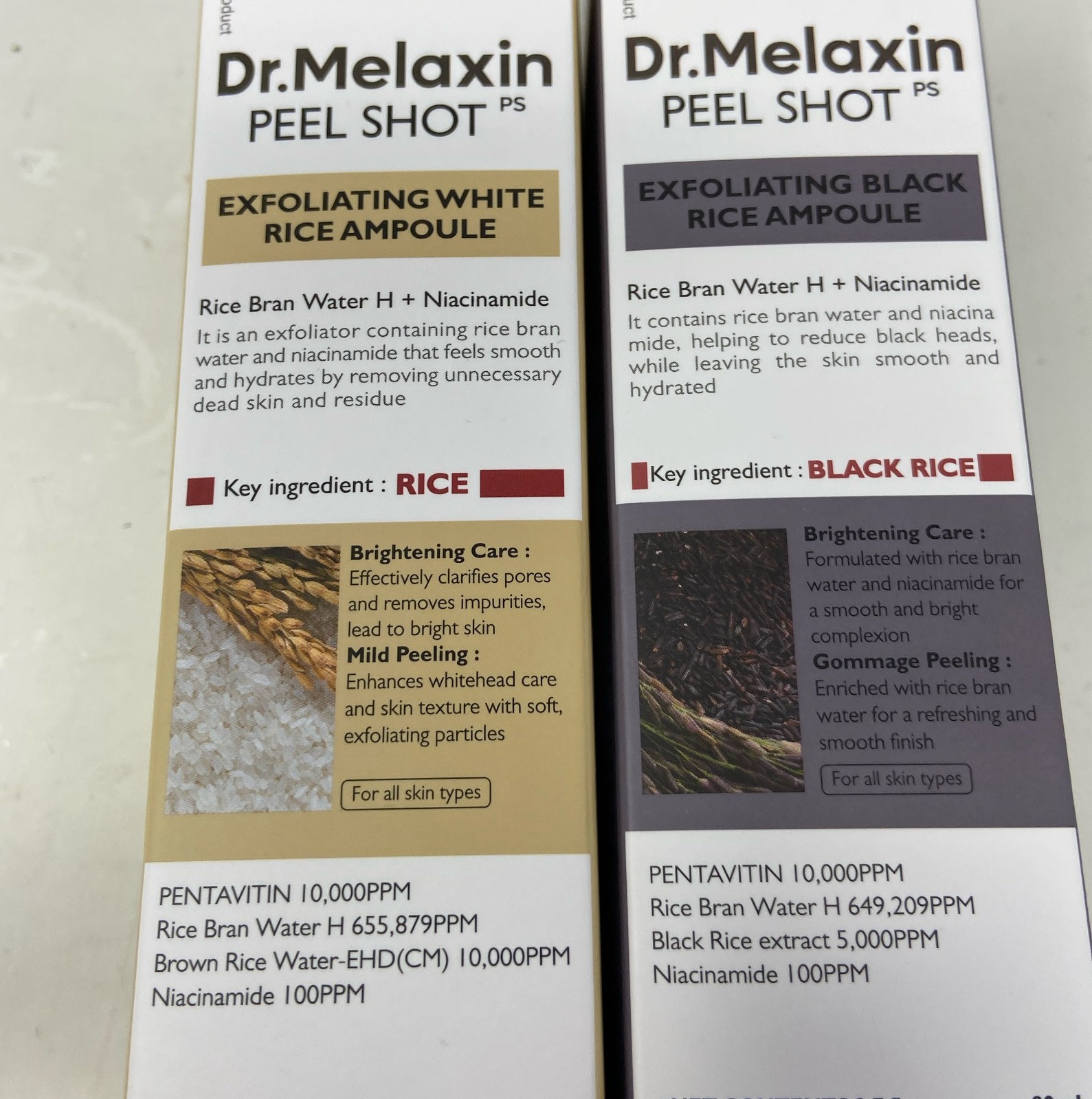 как выглядит Dr.Melaxin Peel Shot Glow Ampoule Duo - Exfoliating White Rice Black Rice фото