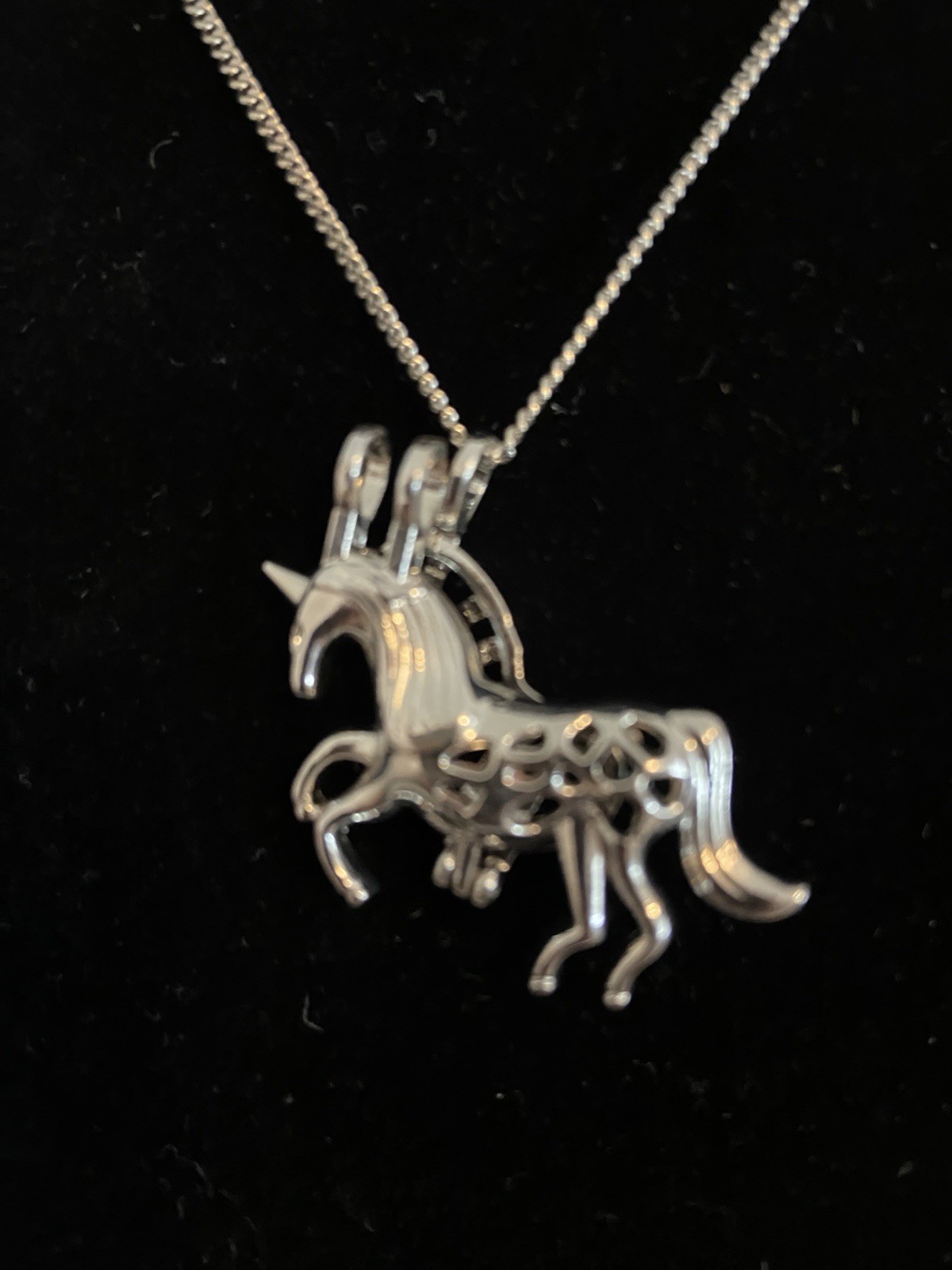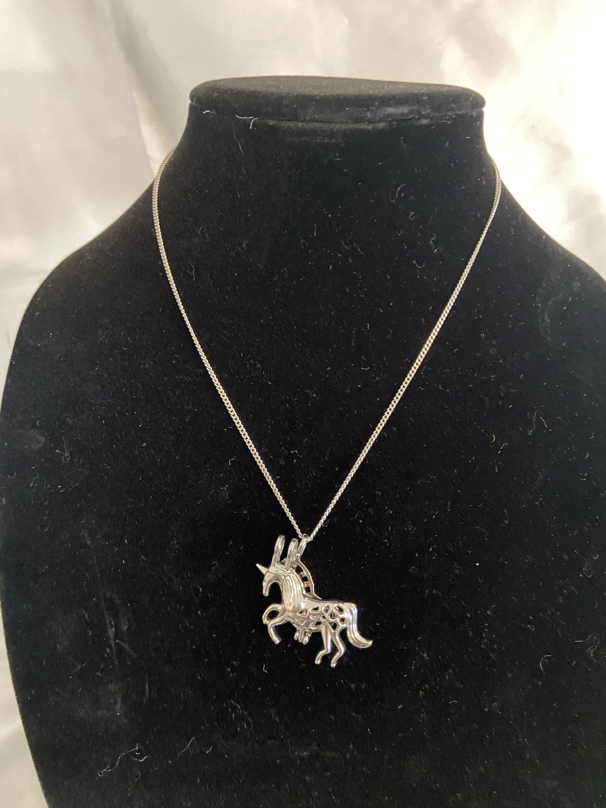 как выглядит Beautiful Silvertone unicorn neck necklace фото