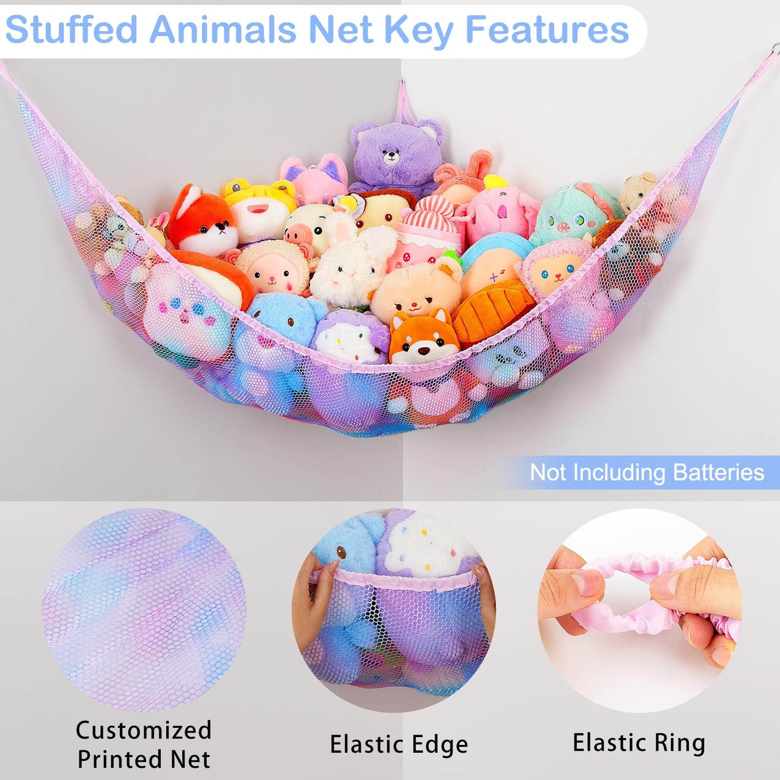 Basumee Stuffed Animals Net or Hammock with LED Light Hanging Toy Net Hammock...