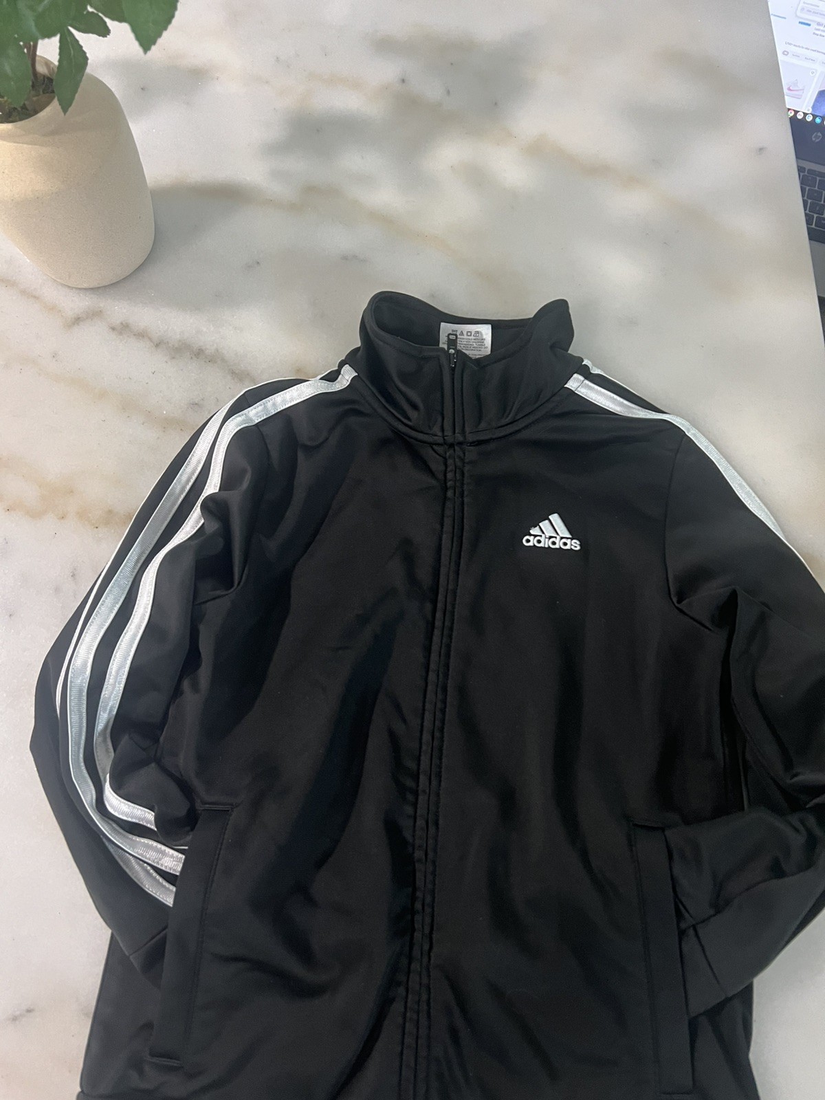 Adidas Kids Black Tracksuit Set Size 6 Polyester Jacket Pants