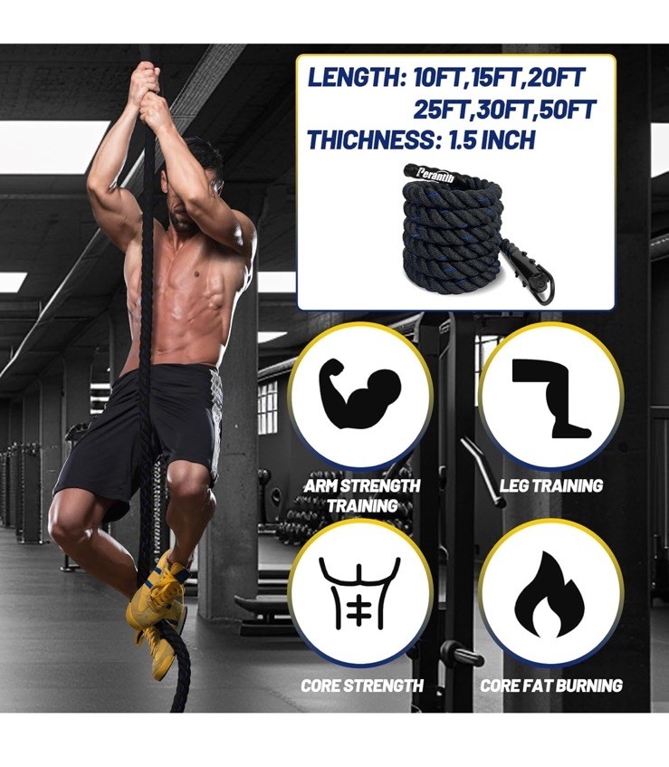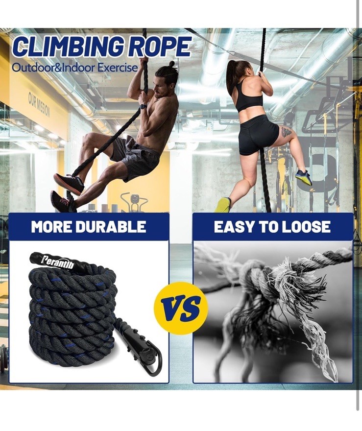 как выглядит 100 Polyester Climbing Rope with Hooks - Heavy Duty 1000LBS Load Capacity 25ft фото