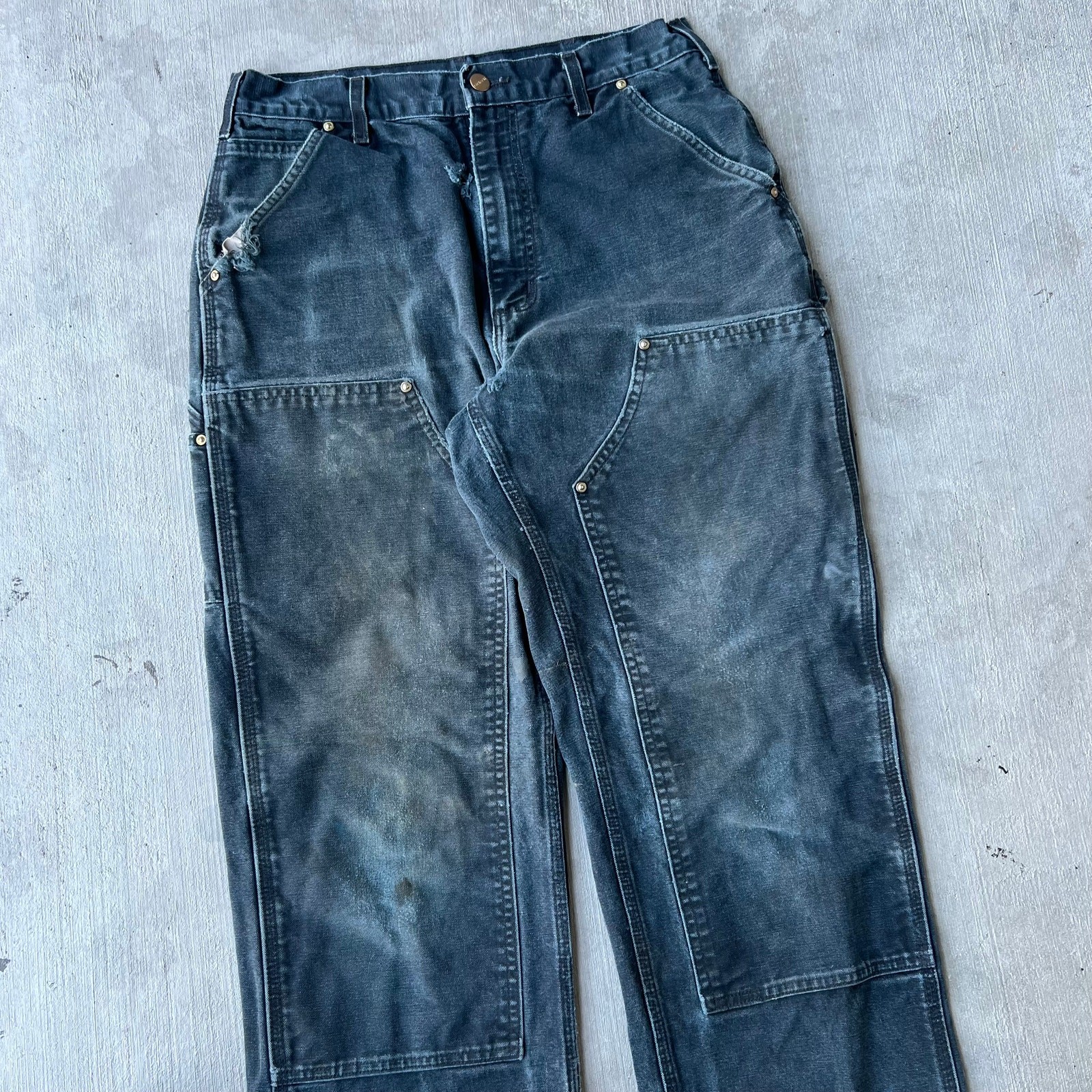 Vintage Y2K Carhartt faded black thrashed double knee work wear carpenter pants