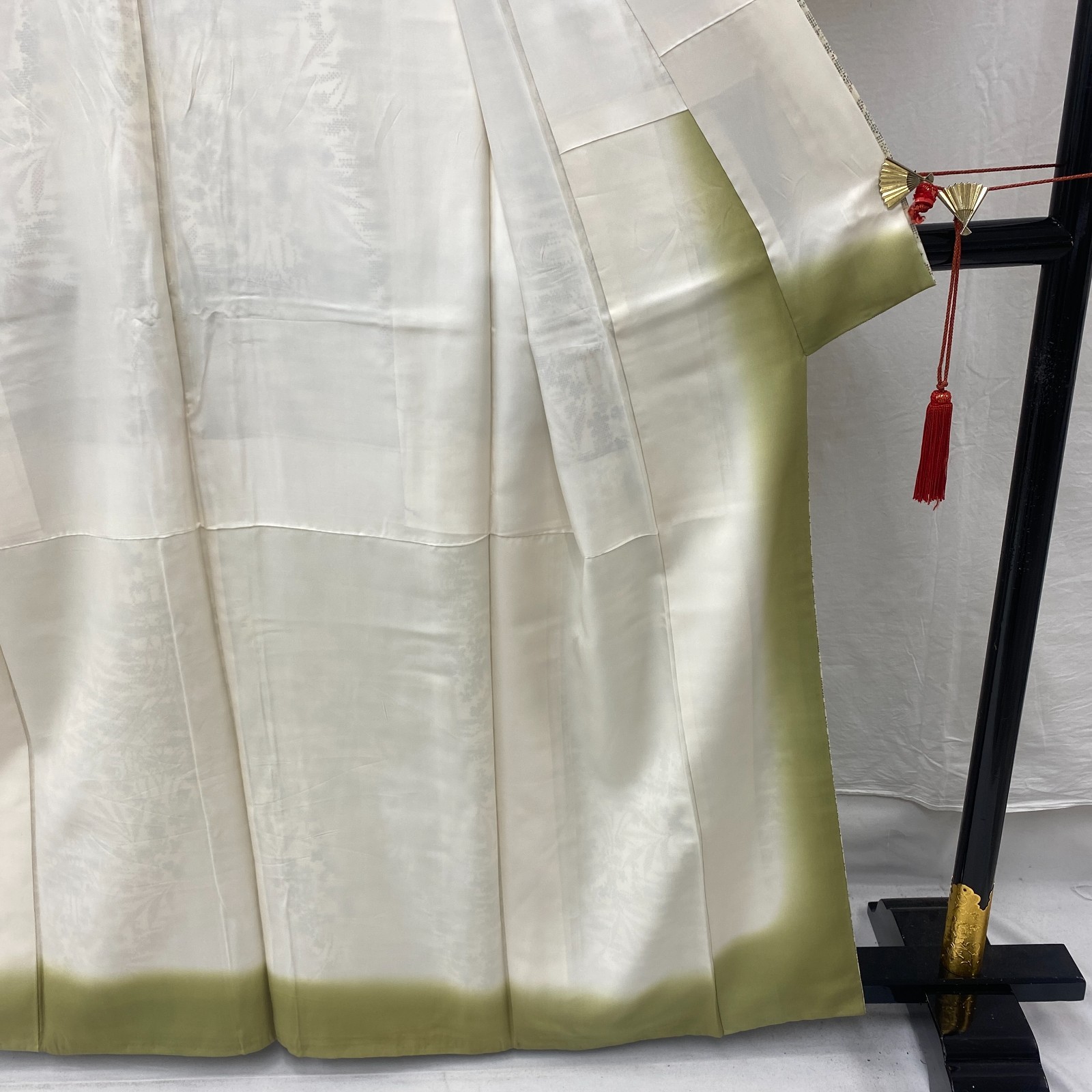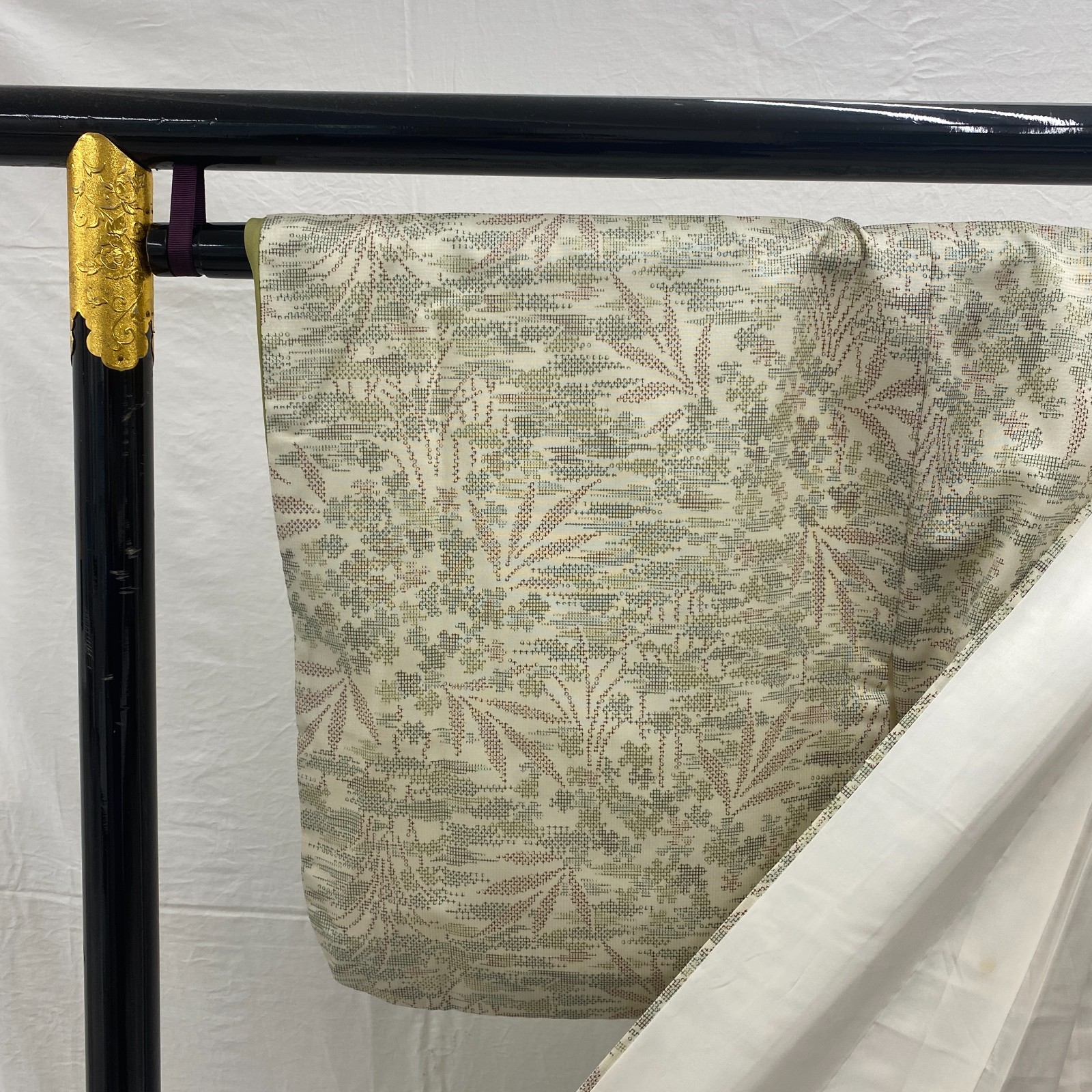 Japanese Vintage Kimono Silk White Tumugi Traditional Authentic Length 62 in