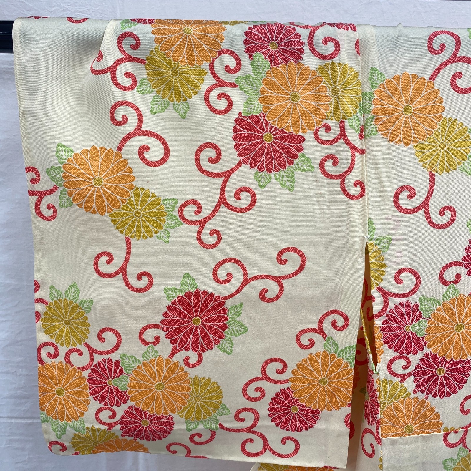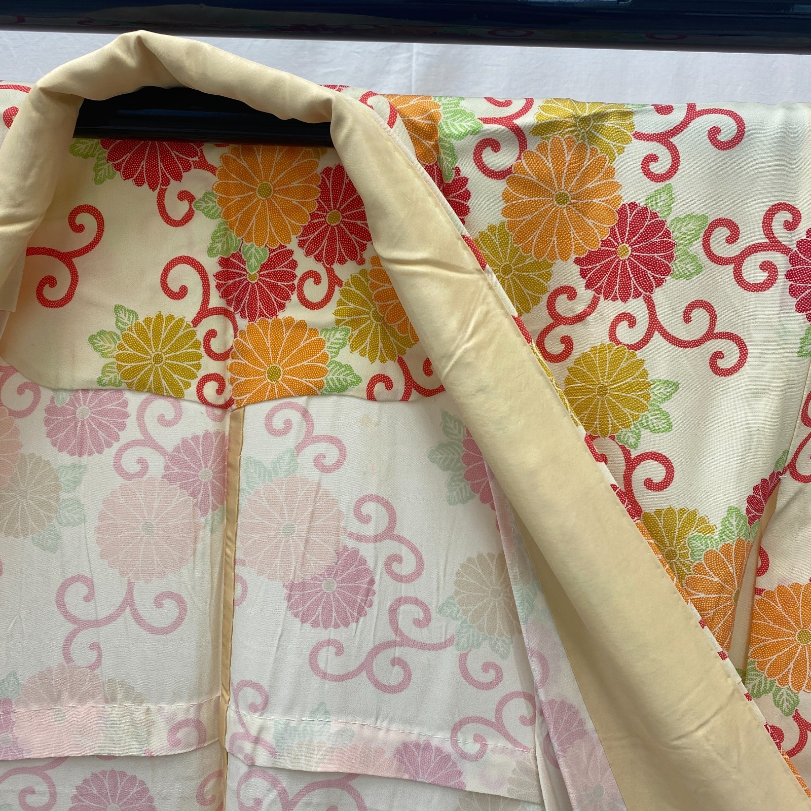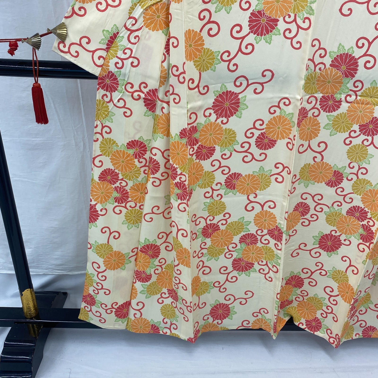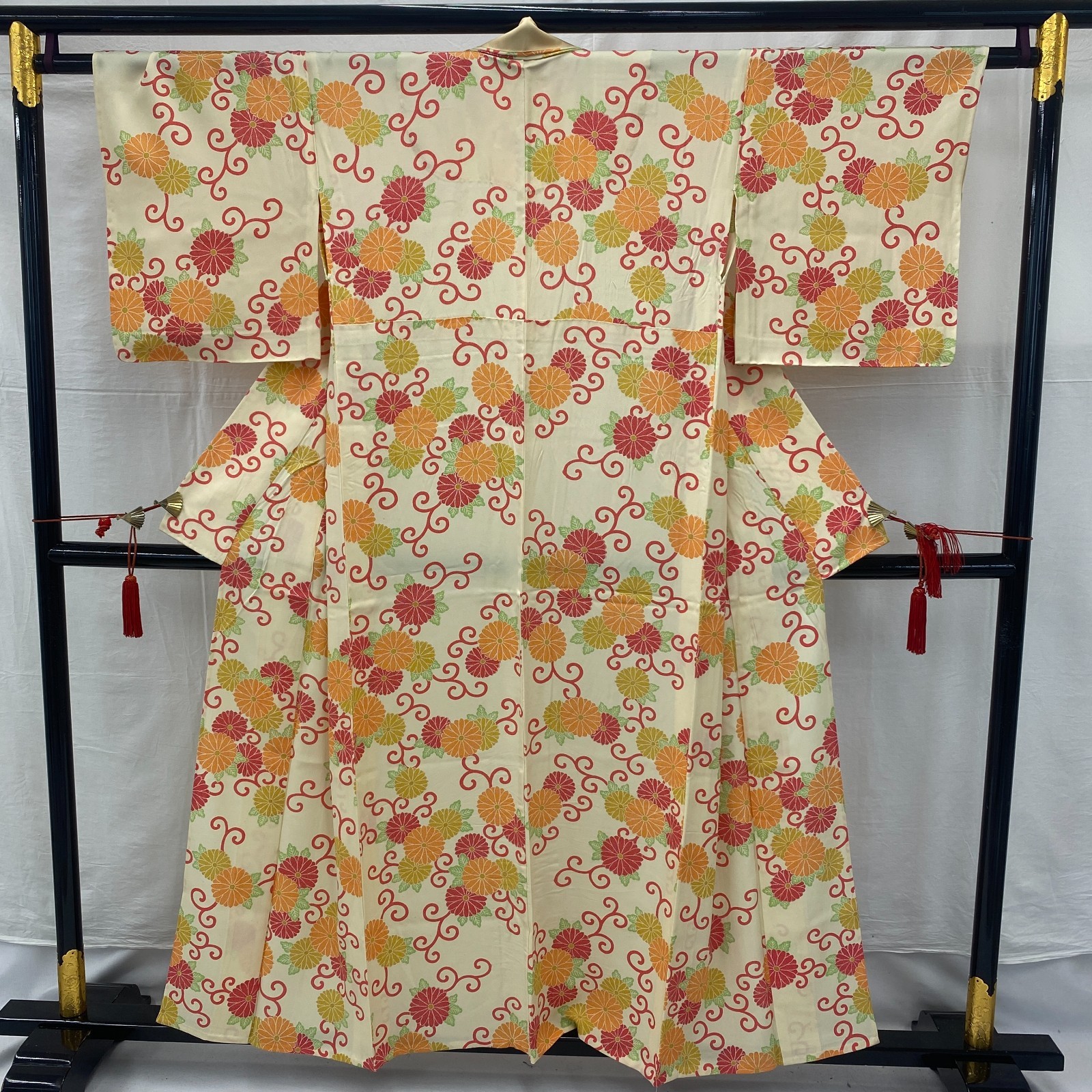Japanese Vintage Kimono Polyester White No Lining Komon Traditional Length 60 in