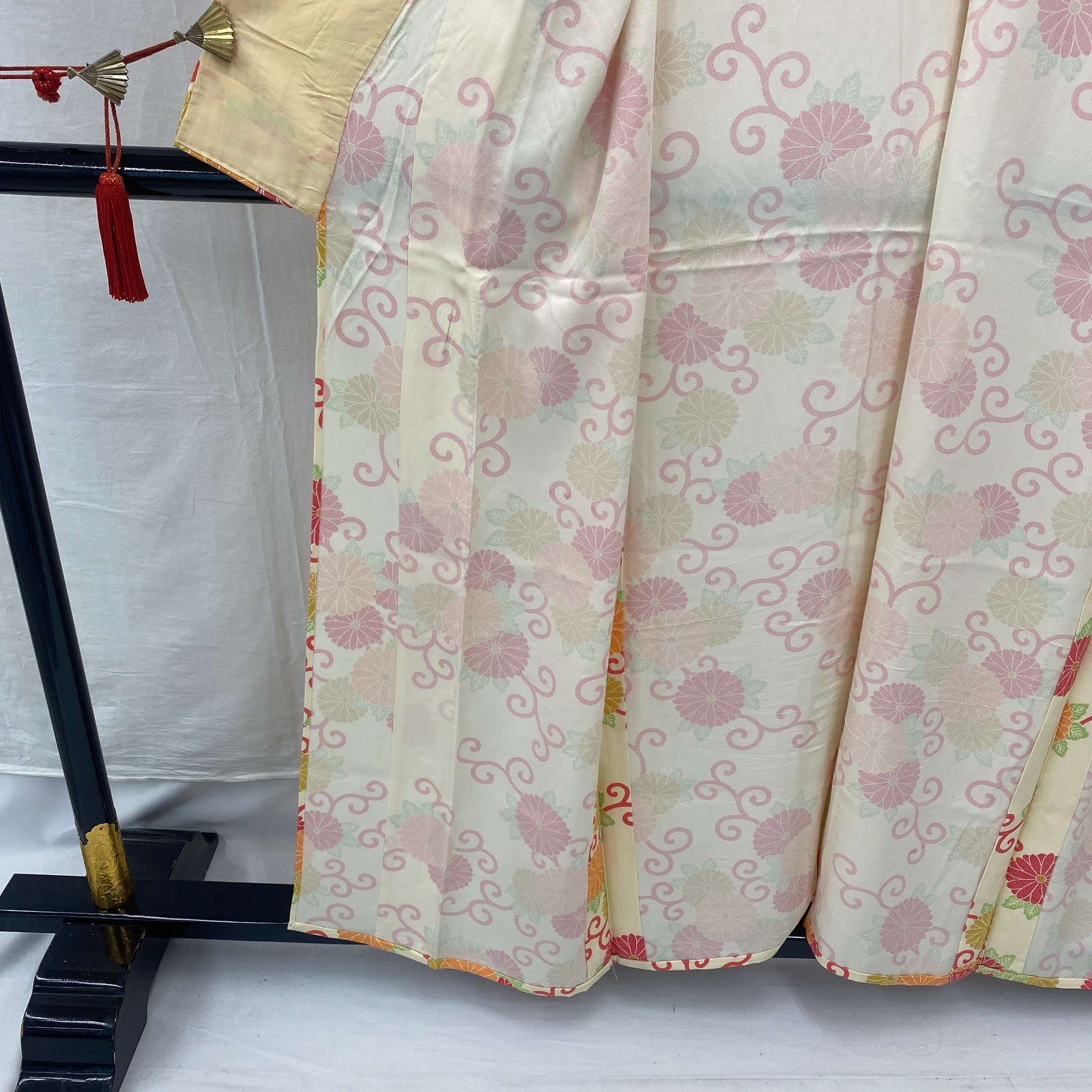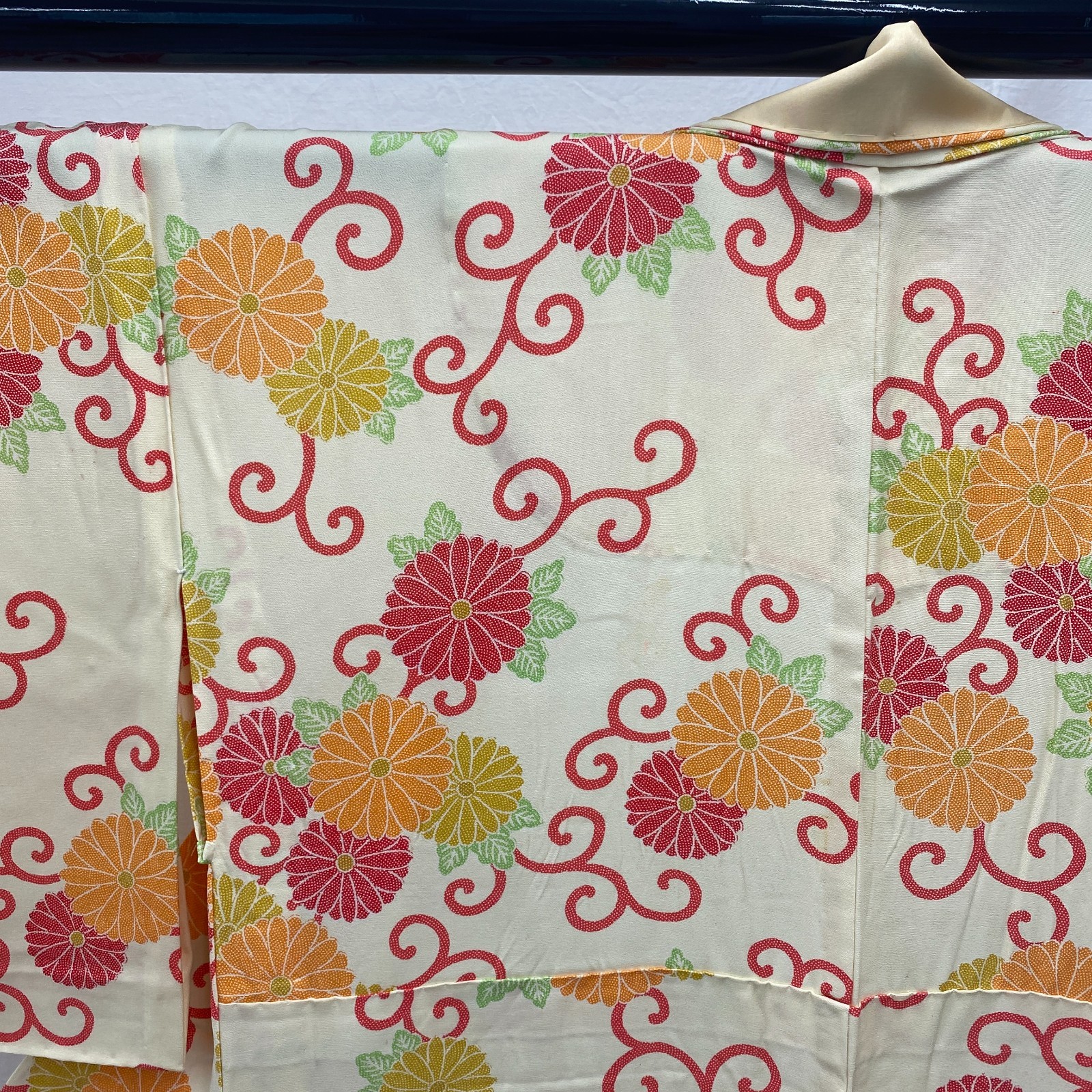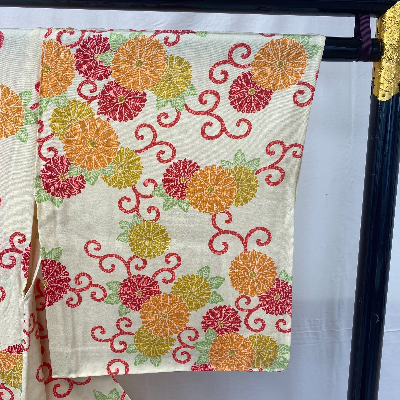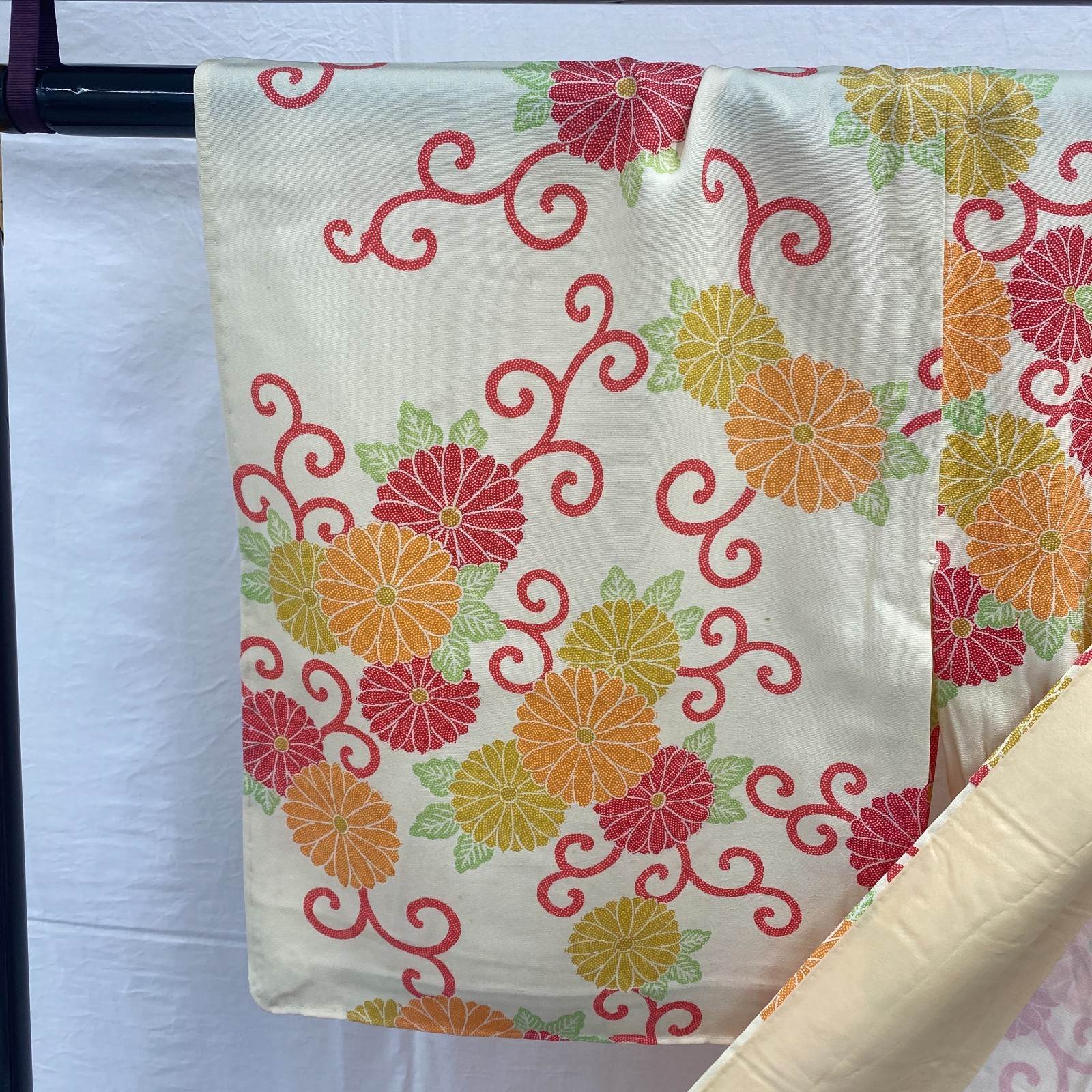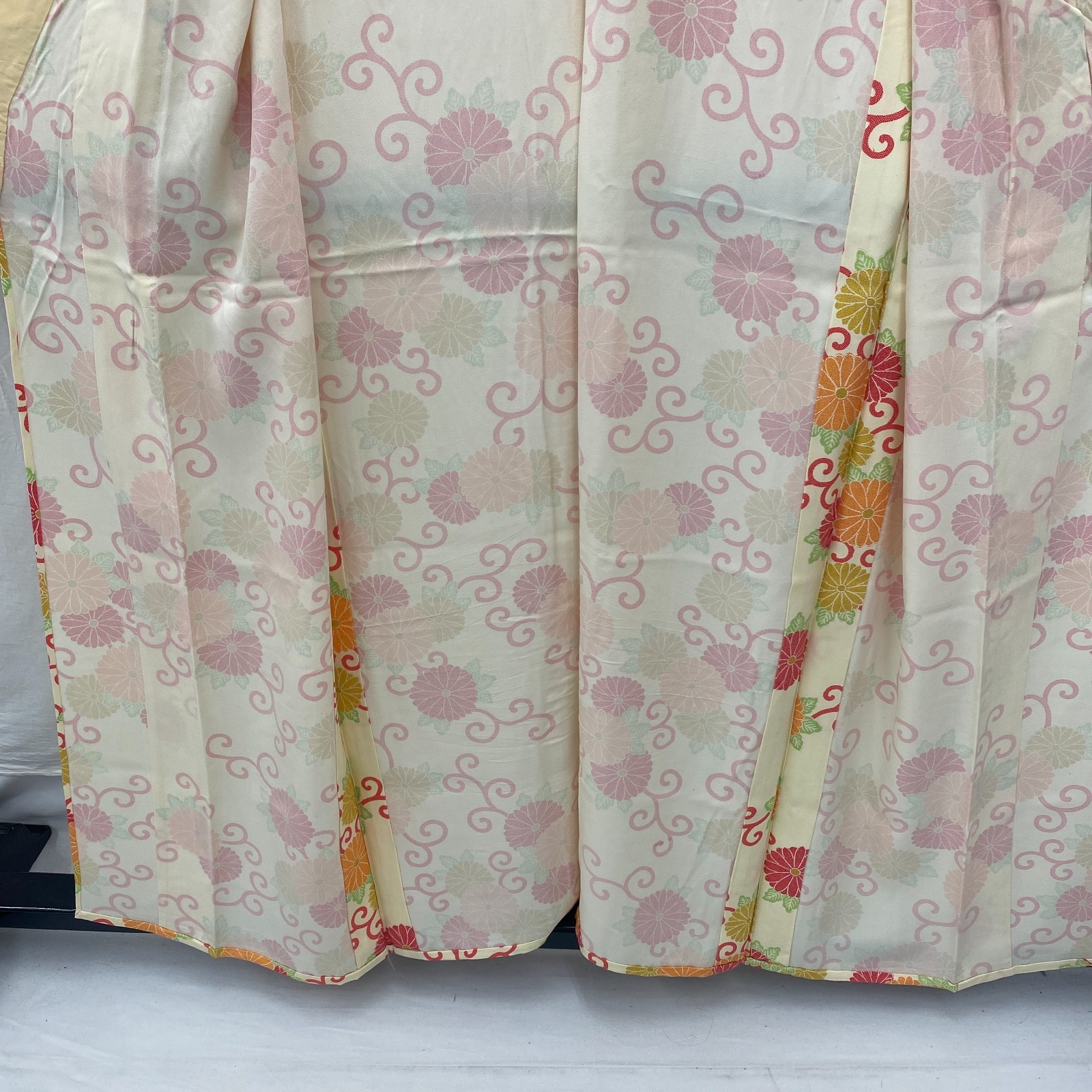 Japanese Vintage Kimono Polyester White No Lining Komon Traditional Length 60 in
