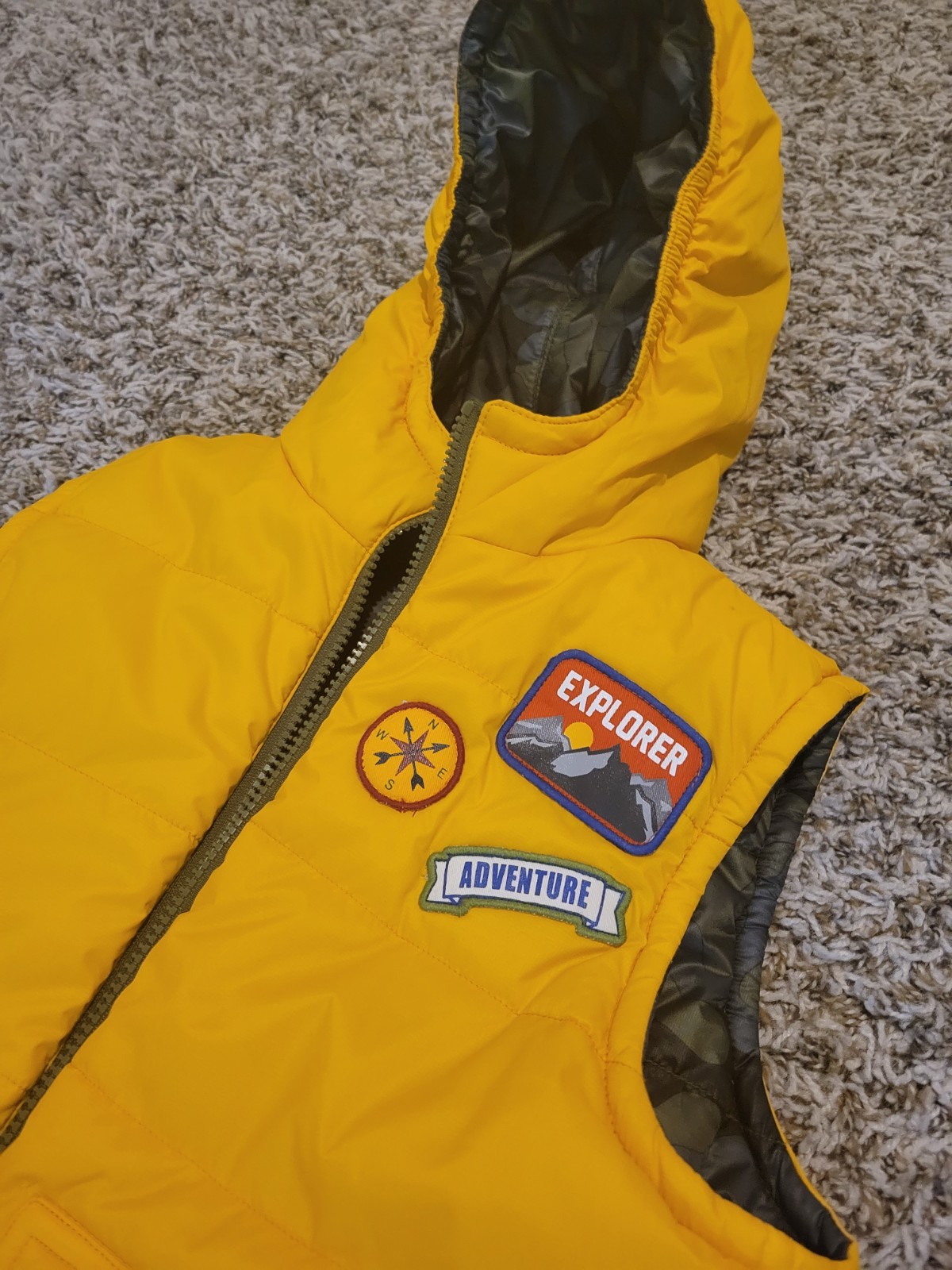 как выглядит Boys Lands End Puffer Vest Medium Reversible With Hood Camo Yellow фото