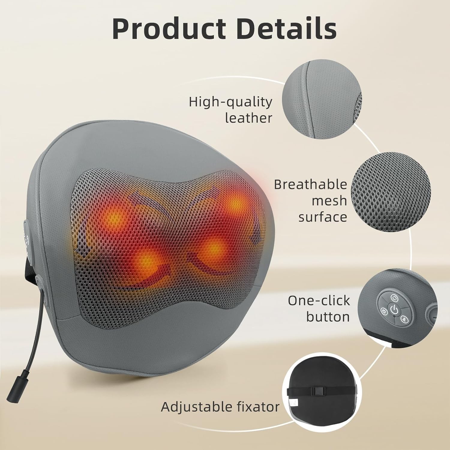 Shiatsu Car Neck and Back Massager with Heat - Rechargeable Kneading Massage Pil
