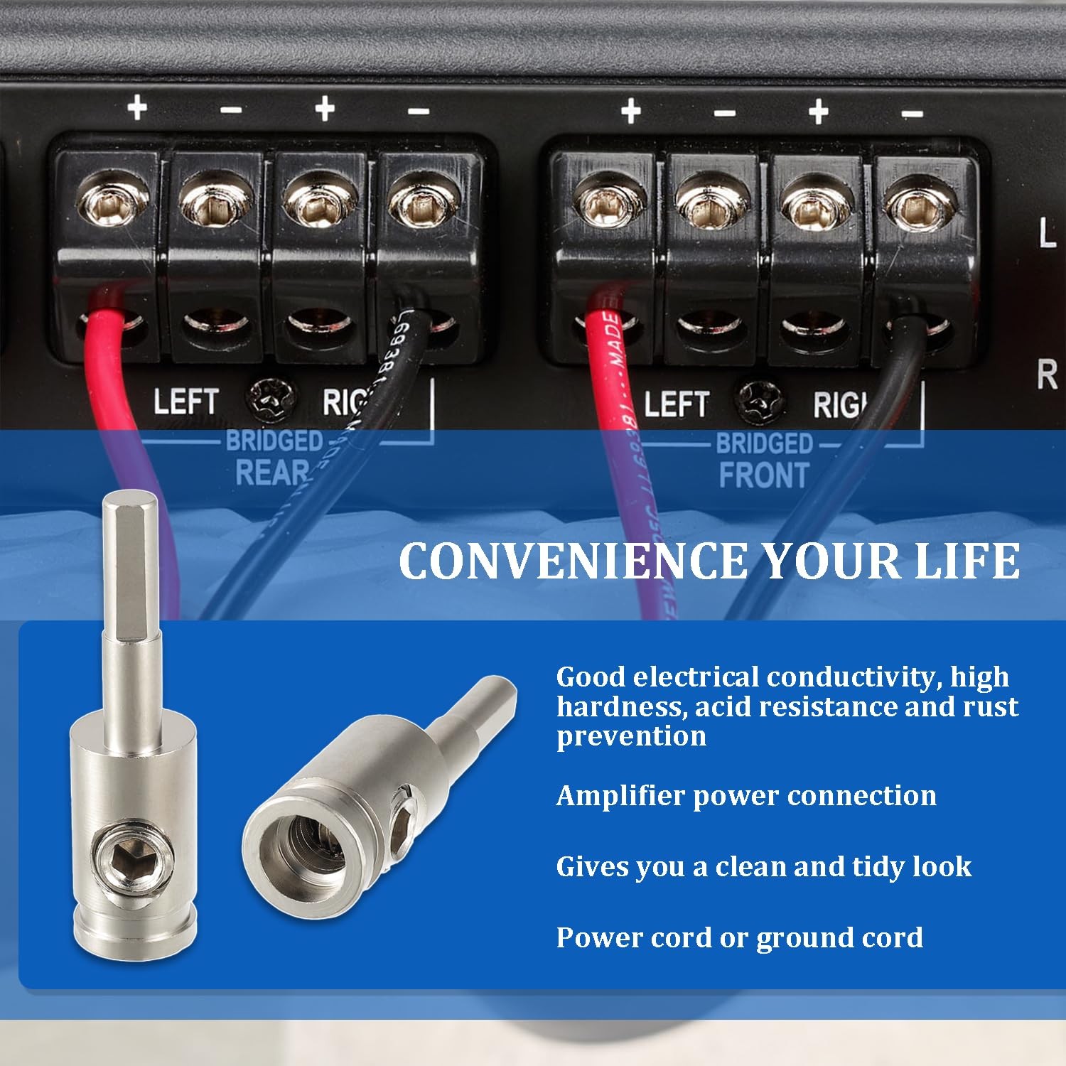 Amp Input Reducer 8 Gauge to 8 Gauge Wire Car Stereo Power/Ground GA Adapters wi