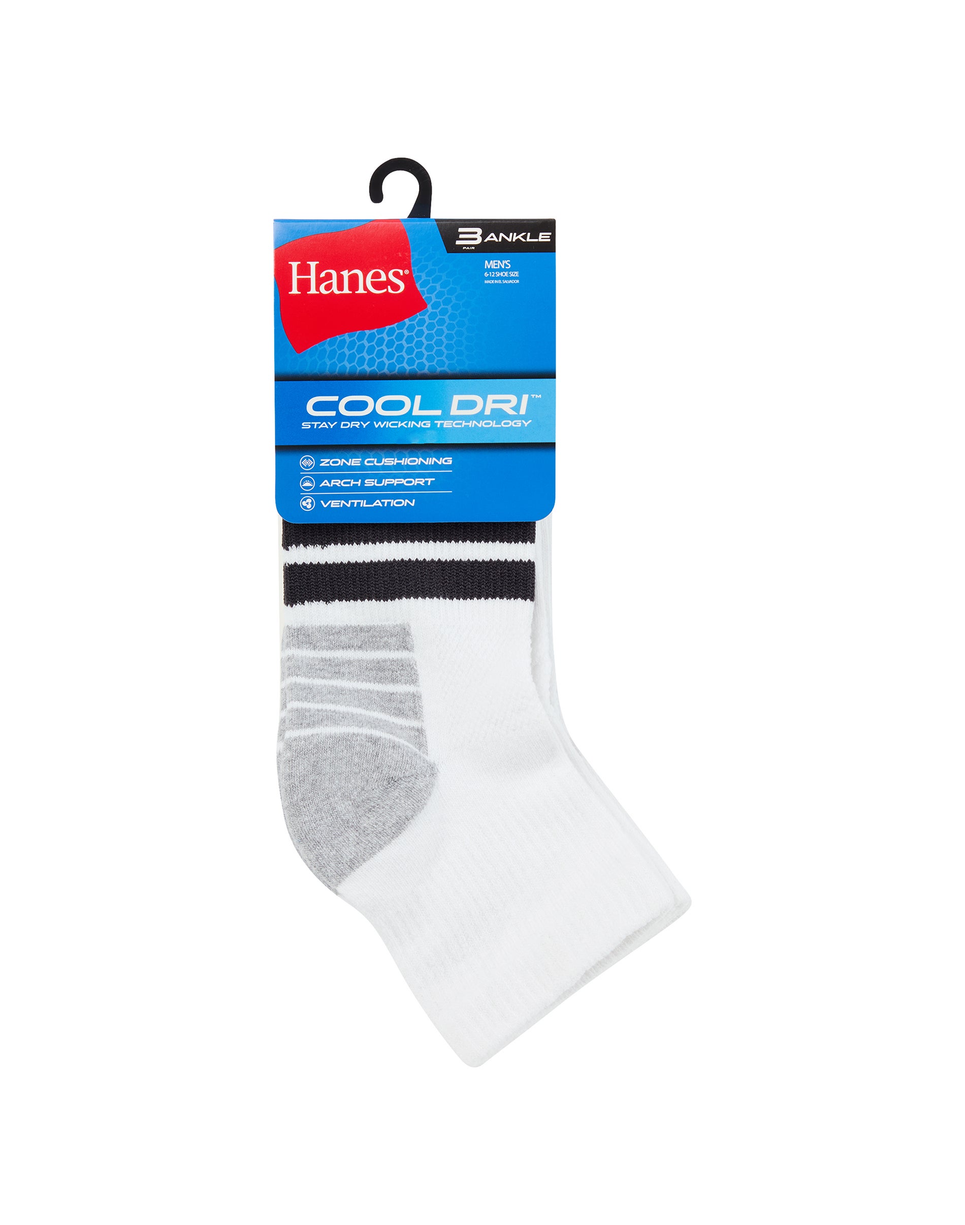 Hanes Men's 3-Pack Ankle Socks Cool Dri Ventilation Moisture wick arch support