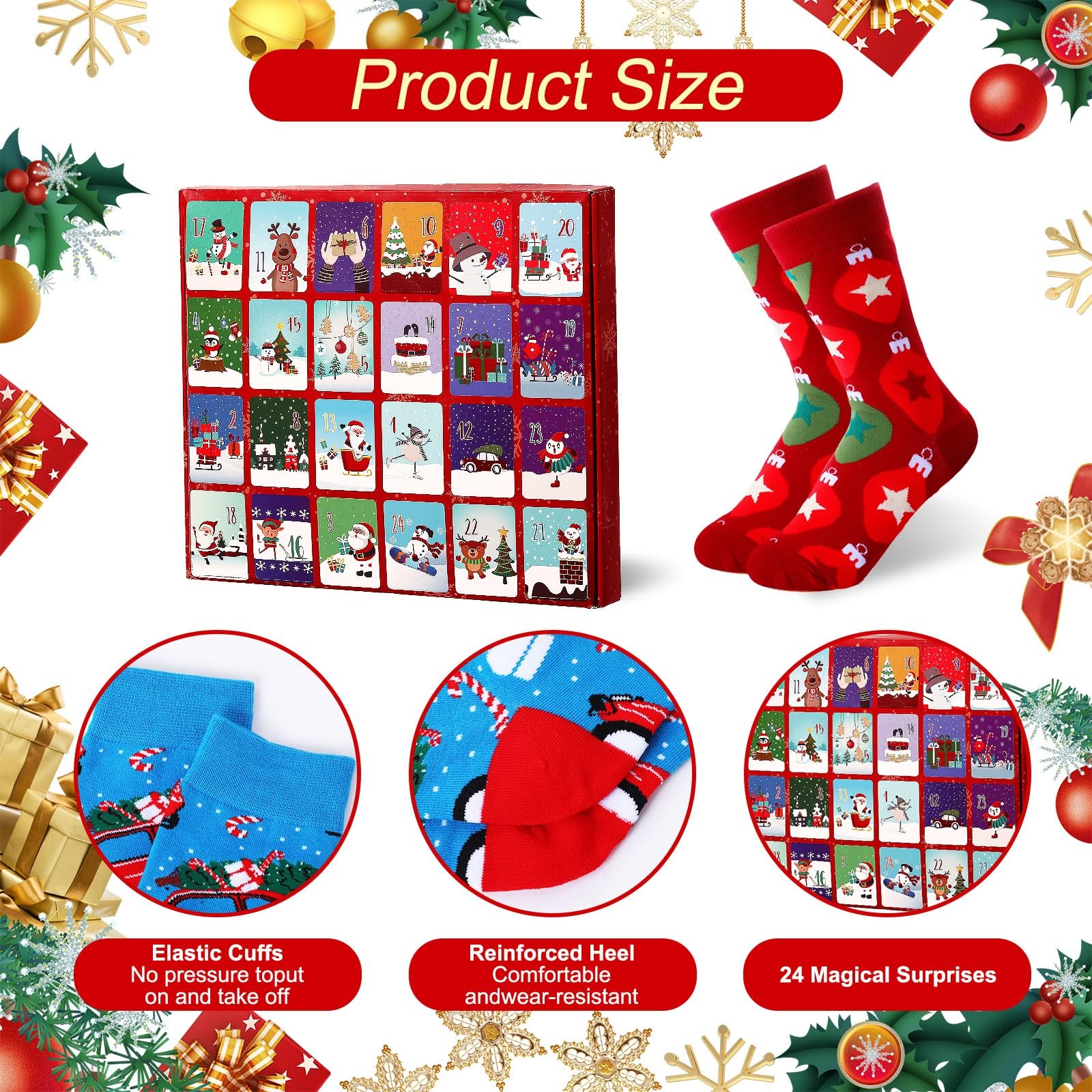 24 Pairs Christmas Sock Advent Calendar 2025 Unisex Socks 24 Days Countdown G...