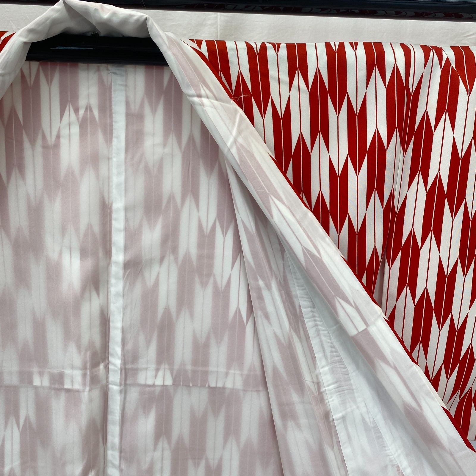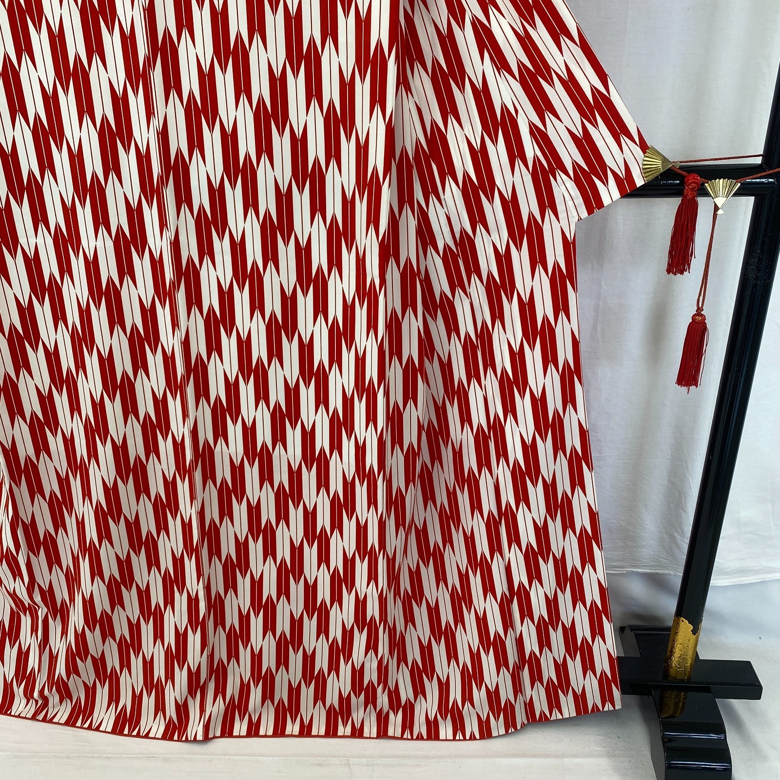 как выглядит Japanese Vintage Kimono Cotton Red Komon Traditional Authentic Length 63 in фото