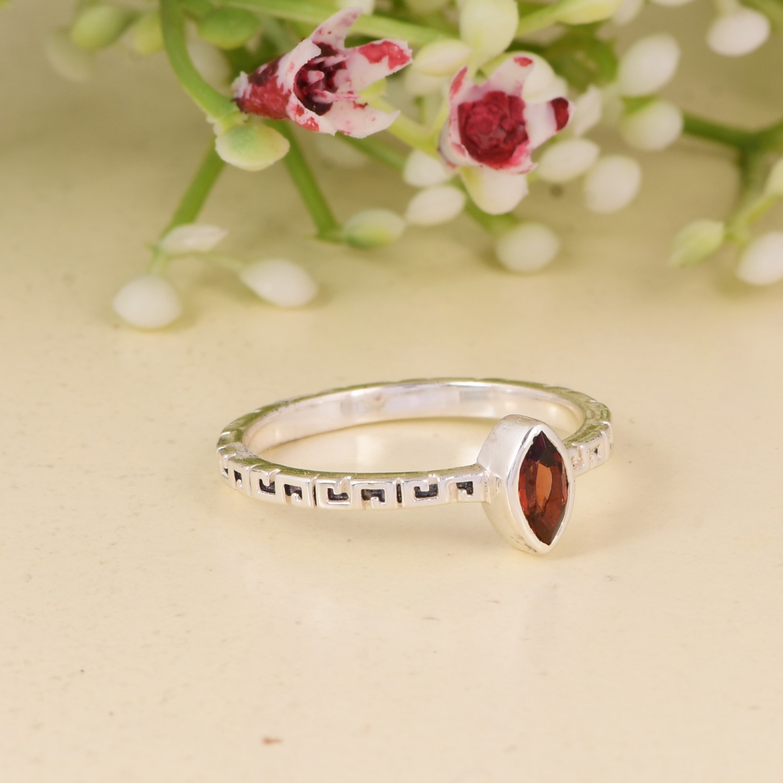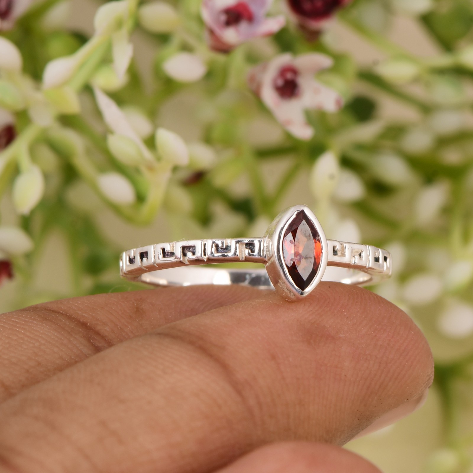 как выглядит Natural Garnet Gemstone Ring Handmade 925 Sterling Silver Jewelry Gift For Her. фото
