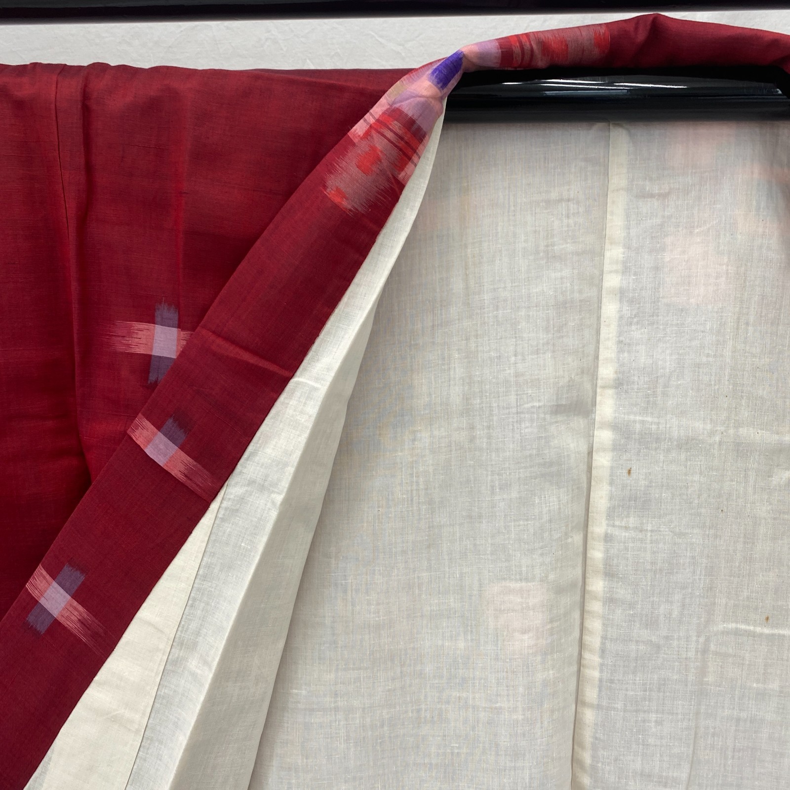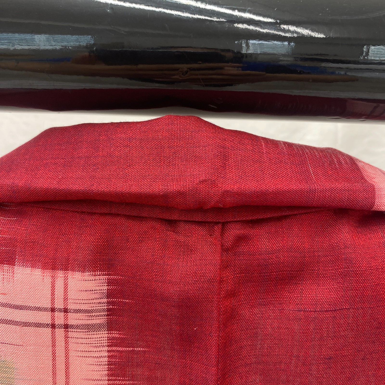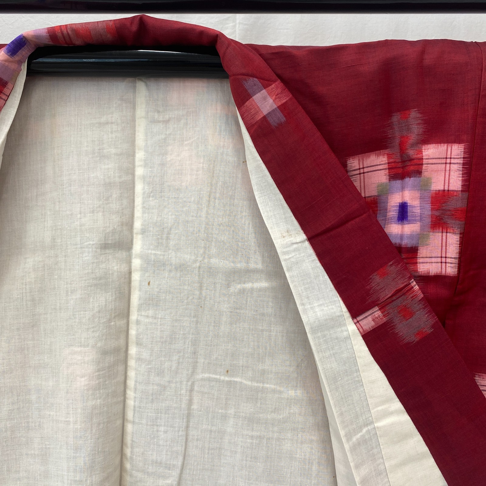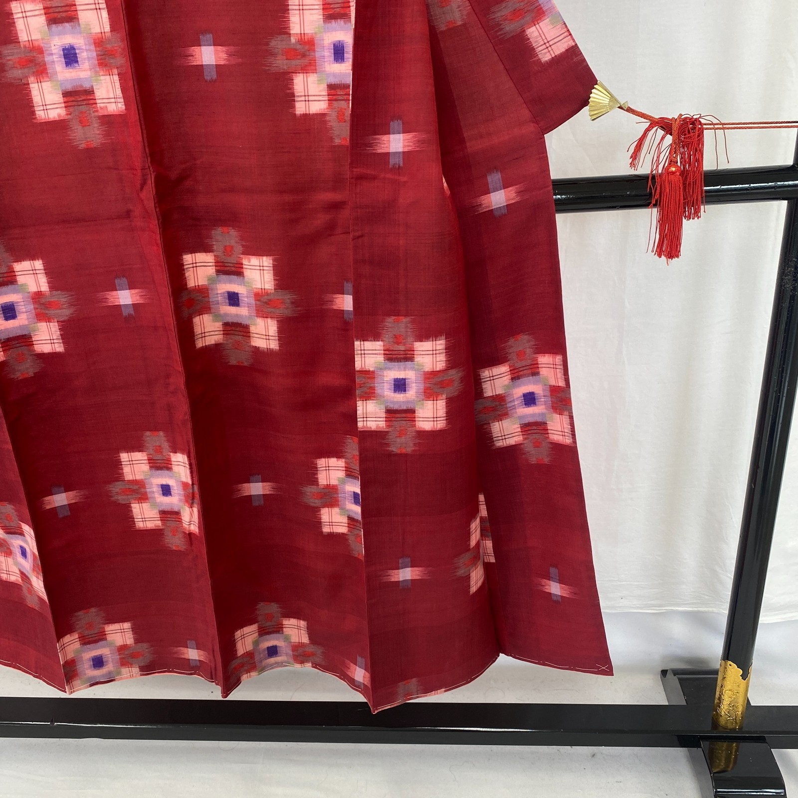 Japanese Vintage Kimono Silk Red Tumugi Traditional Authentic Length 55 in