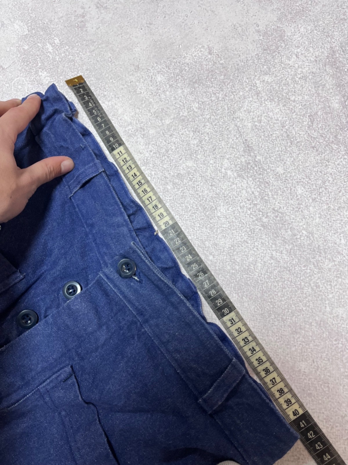как выглядит Rare French 1950s Faded Repaired Blue Cotton Twill Work Chore Pants Sanfor фото