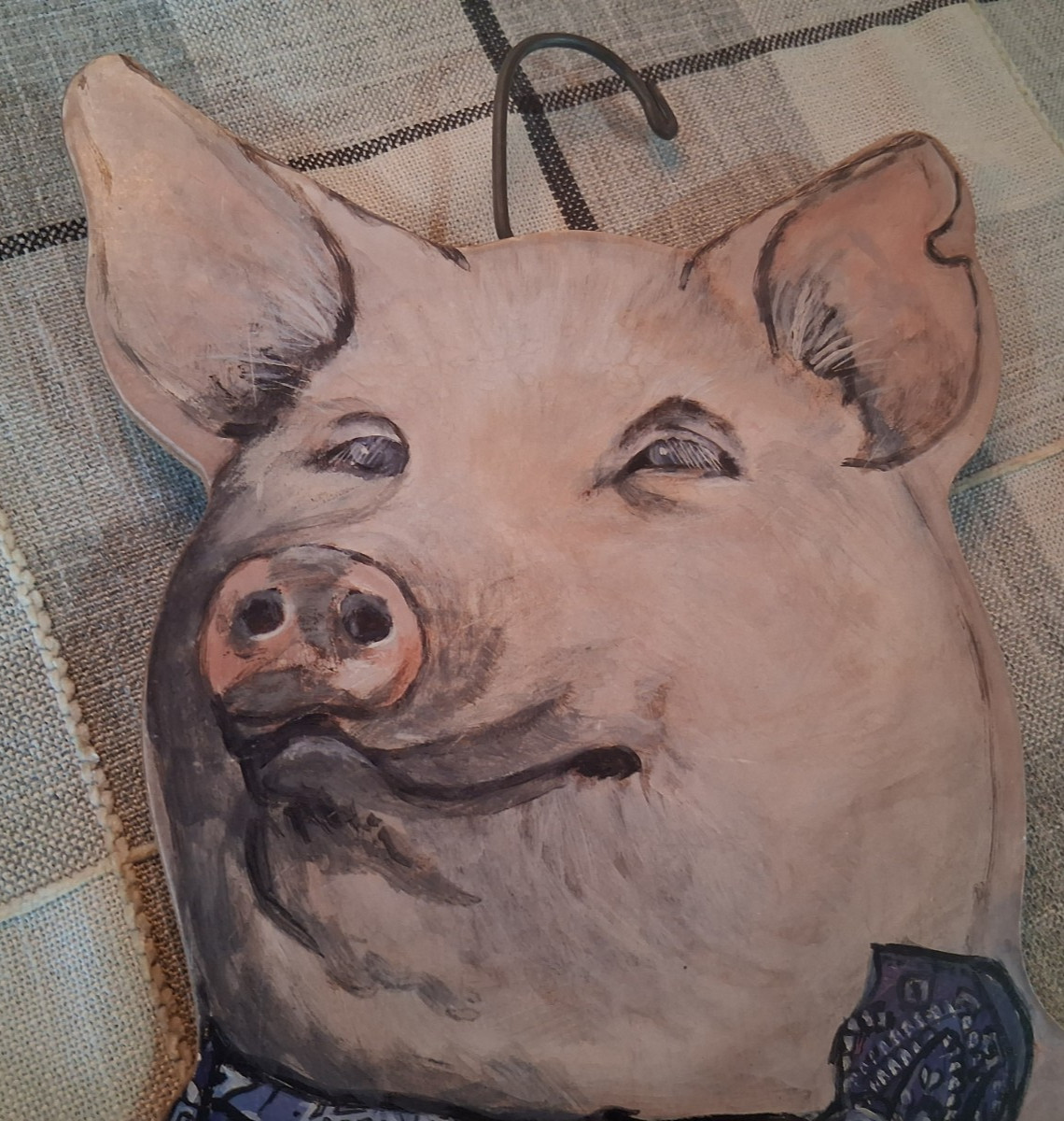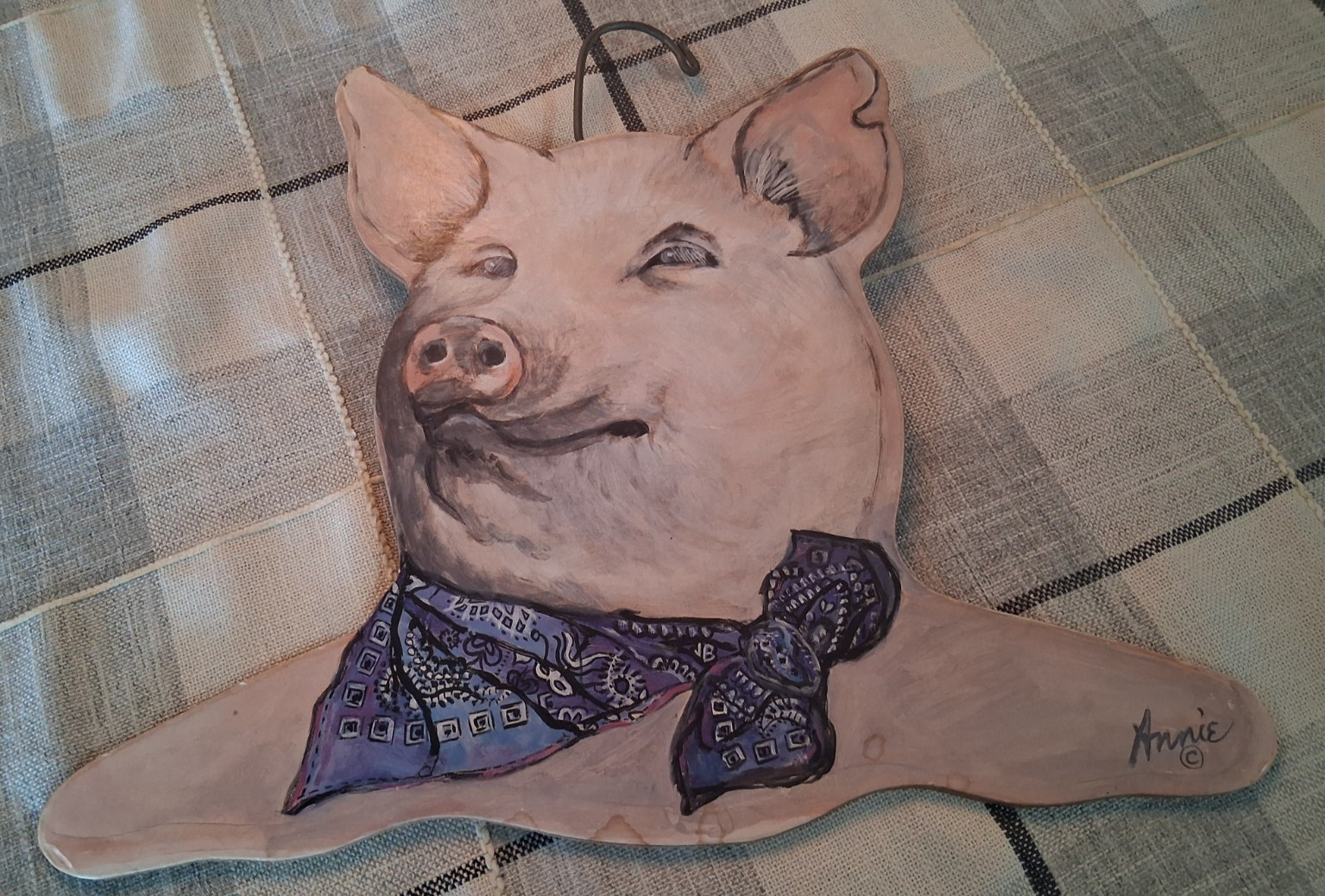 Annie Rhinehart Wooden Pig with Bandana clothes hanger , Stupell Hanger