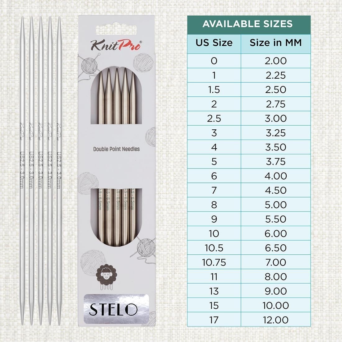 KnitPro Stelo Double-Pointed Knitting Needles 8 20cm Size 0 - 17