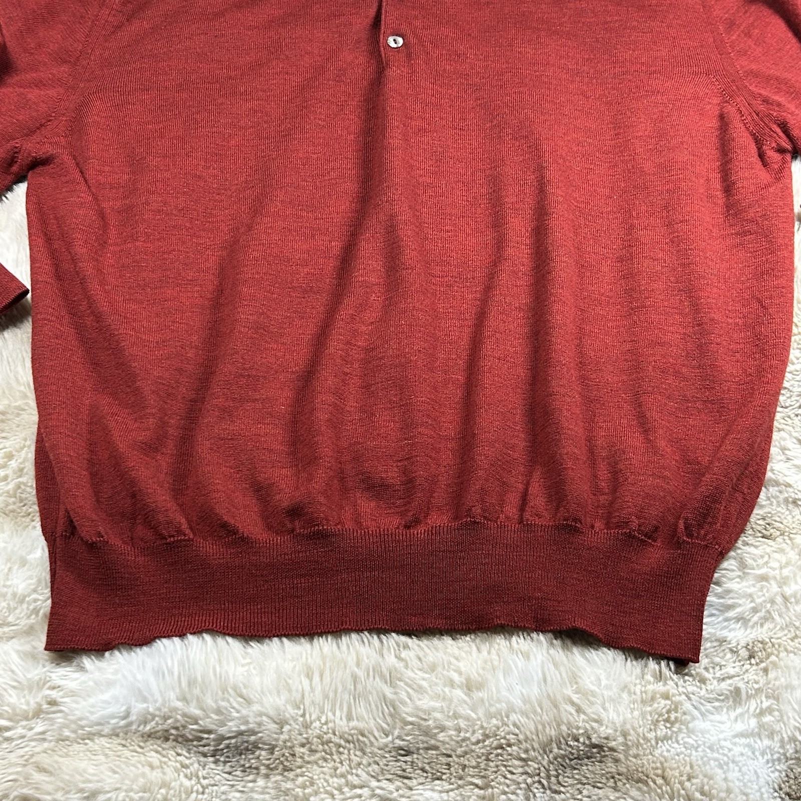 как выглядит Saks Fifth Avenue Red Sweater Virgin Wool 1/4 Button XL фото