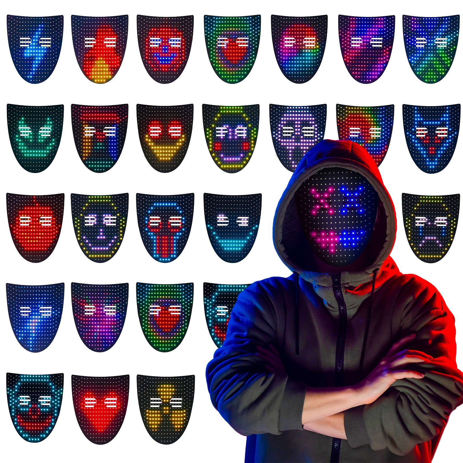 как выглядит LED Halloween Mask-with Gesture Sensor, Illuminated Mask for Kids/Men/Women фото
