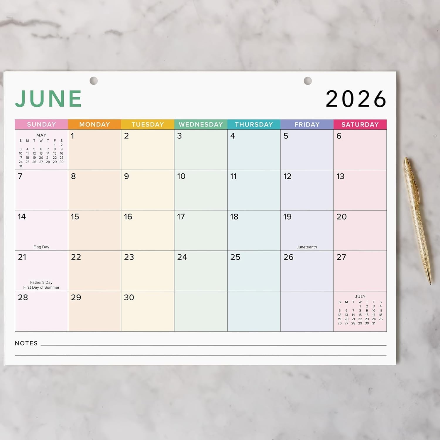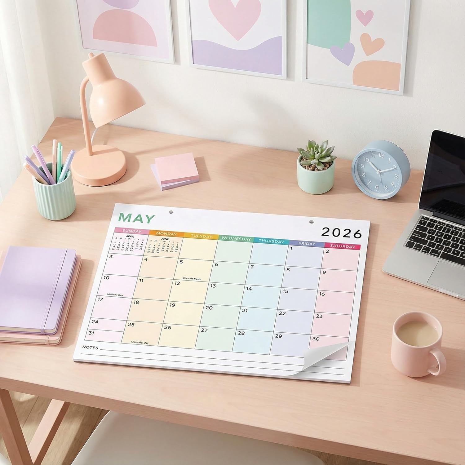• Colorful 2026 Desk Calendar - Runs from January 2026 until July 2027 - Large Eas
