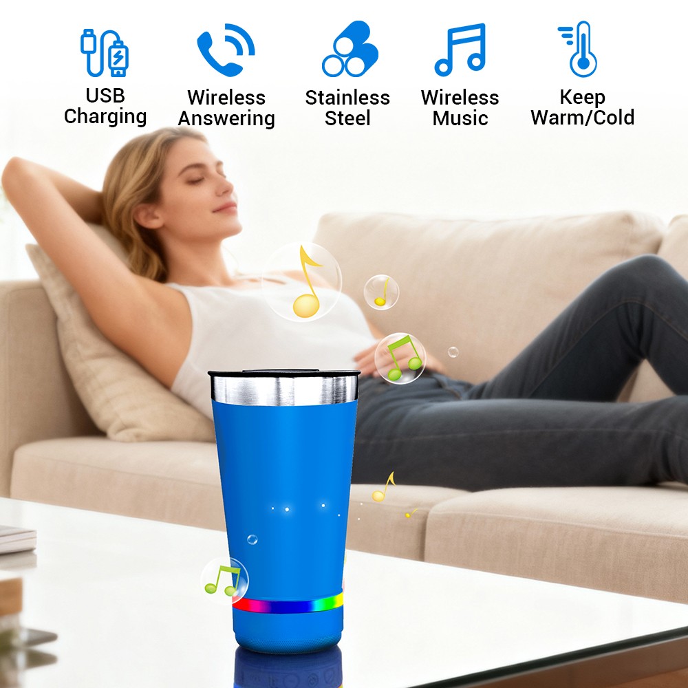 Stainless Steel Water Cup with Built-in Bluetooth Speaker for Outdoor Travel