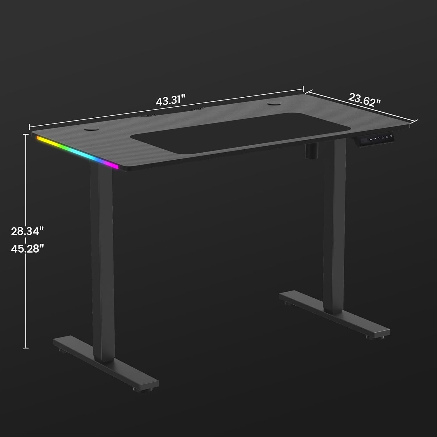 Electric Standing Desk, Adjustable Height Gaming Desk with LED Lights, Ergonomic