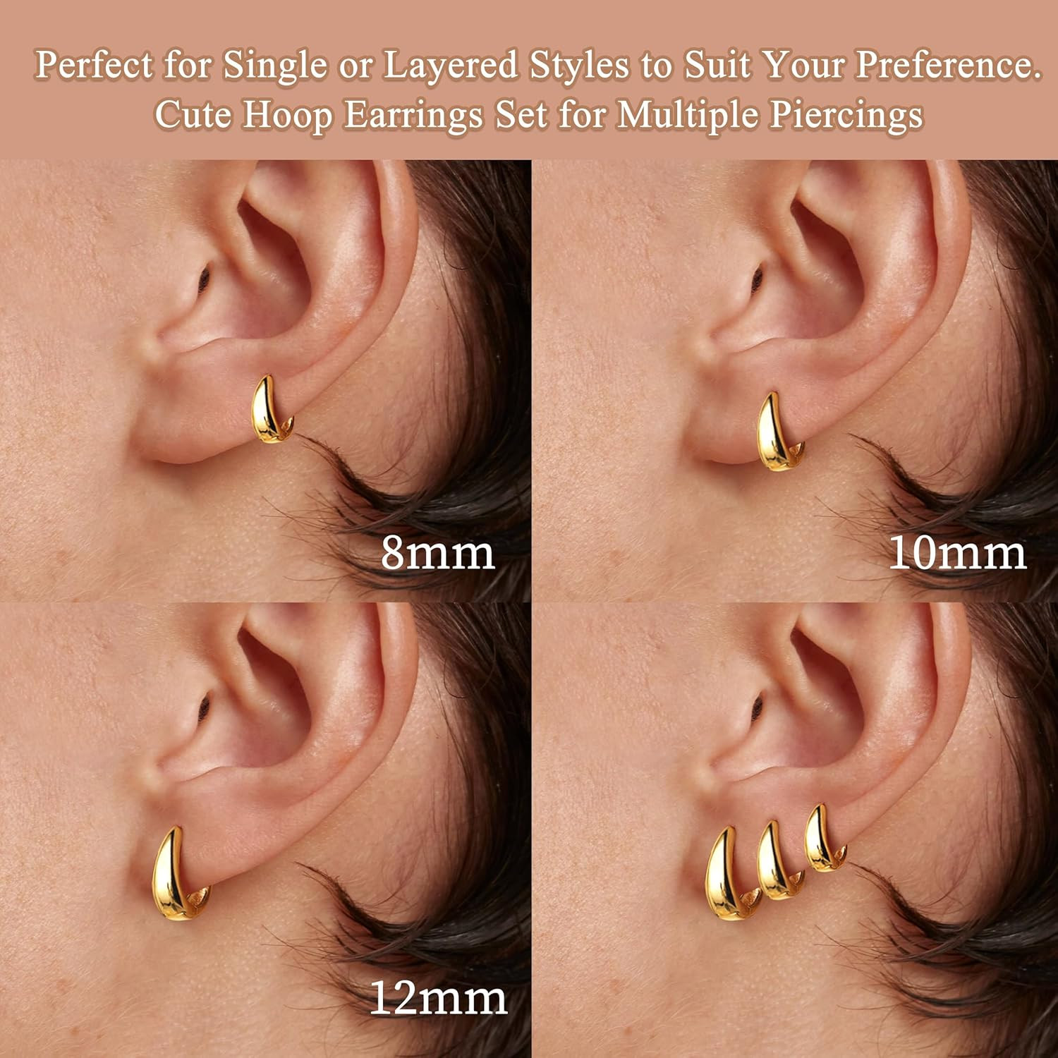 Small Gold Hoop Earrings Set for Women,14K Gold Plated Hypoallergenic Lightweigh