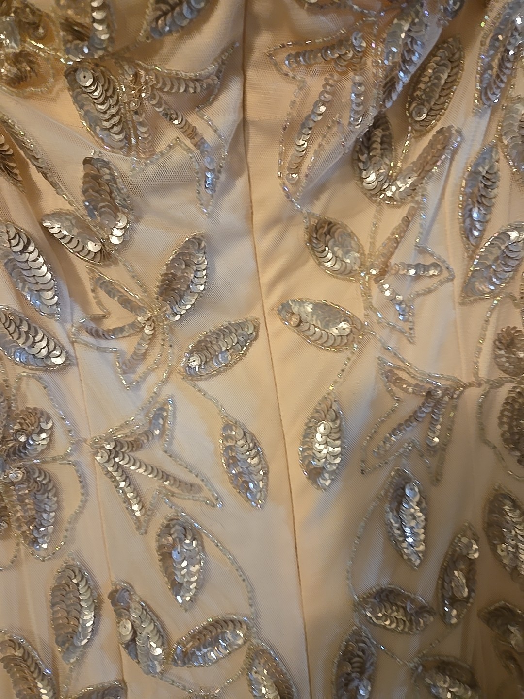 как выглядит Adrianna Papell Pale Pink Off Shoulder Beaded Gown фото