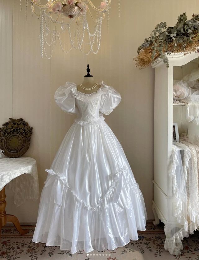 как выглядит Vintage White Ivory Satin Victoria Wedding Dresses Lace Appliques Bridal Gowns фото