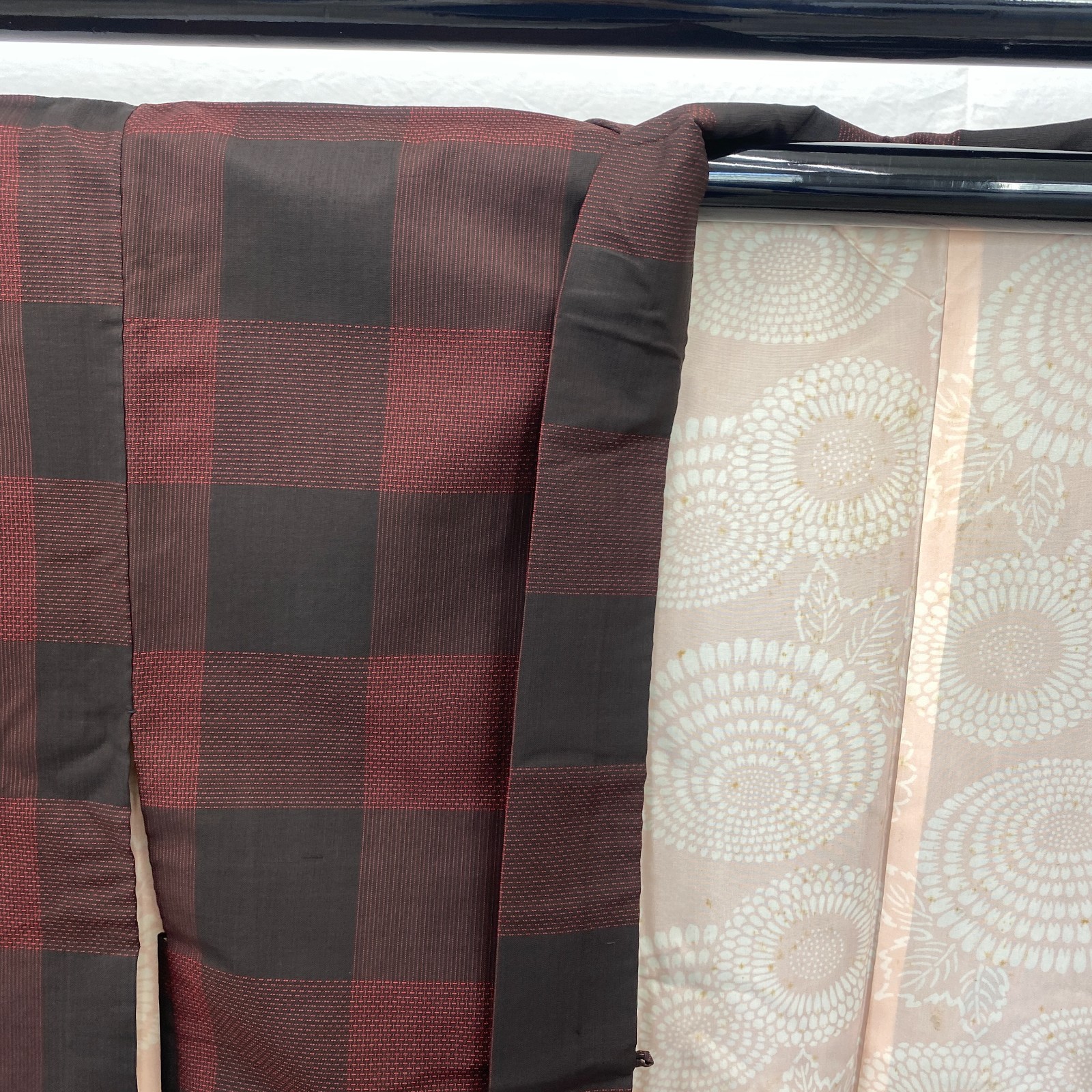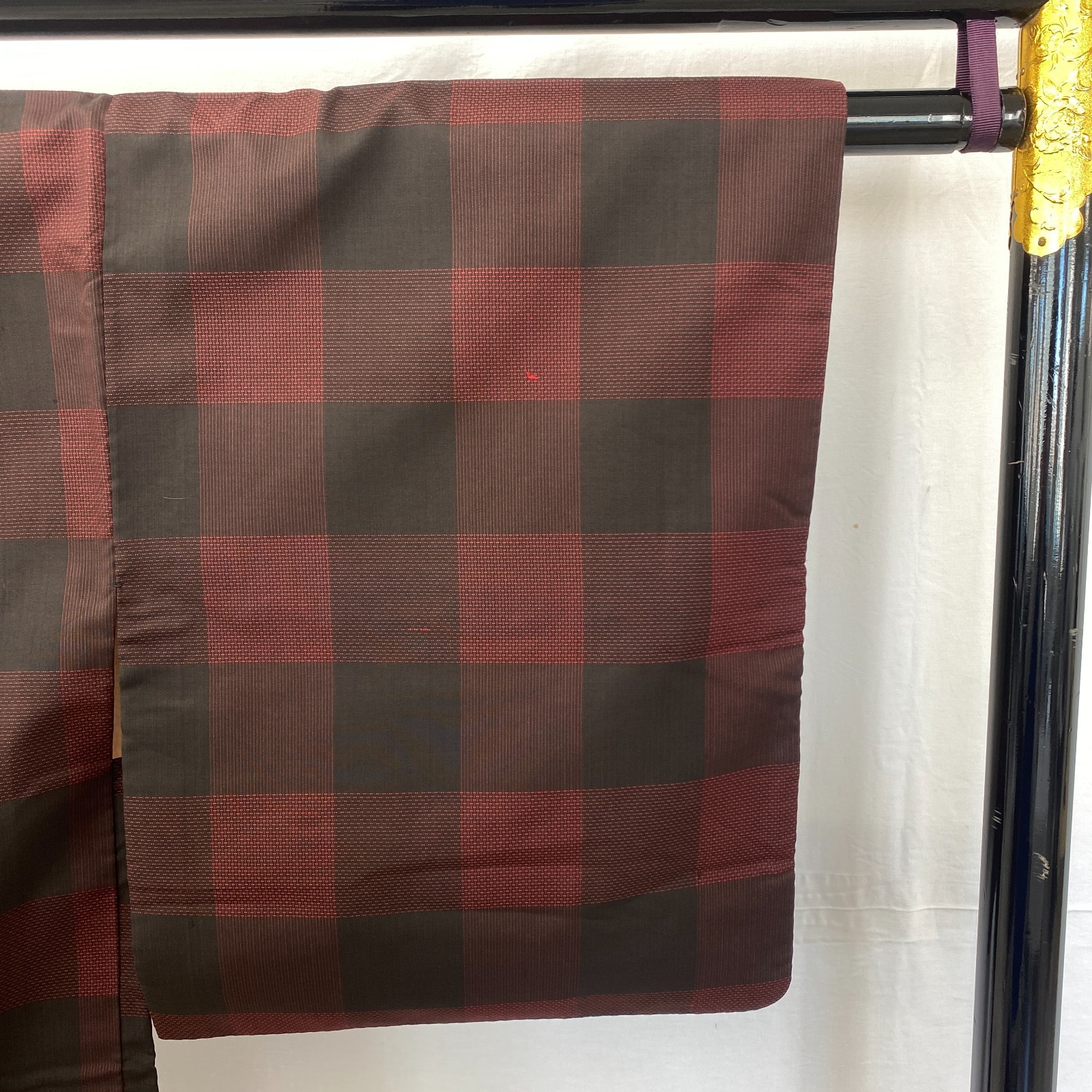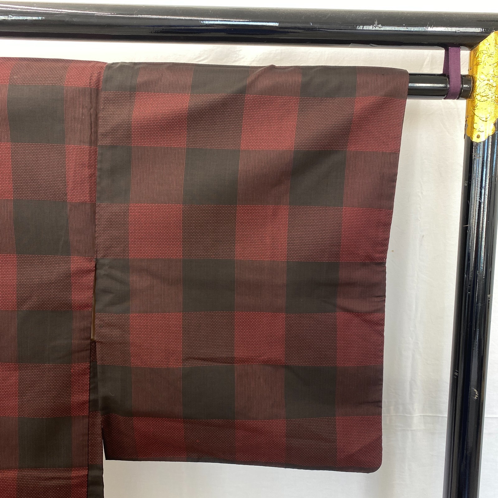 Japanese Vintage Kimono Haori Jacket Silk Red Tumugi Traditional Authentic 31 in