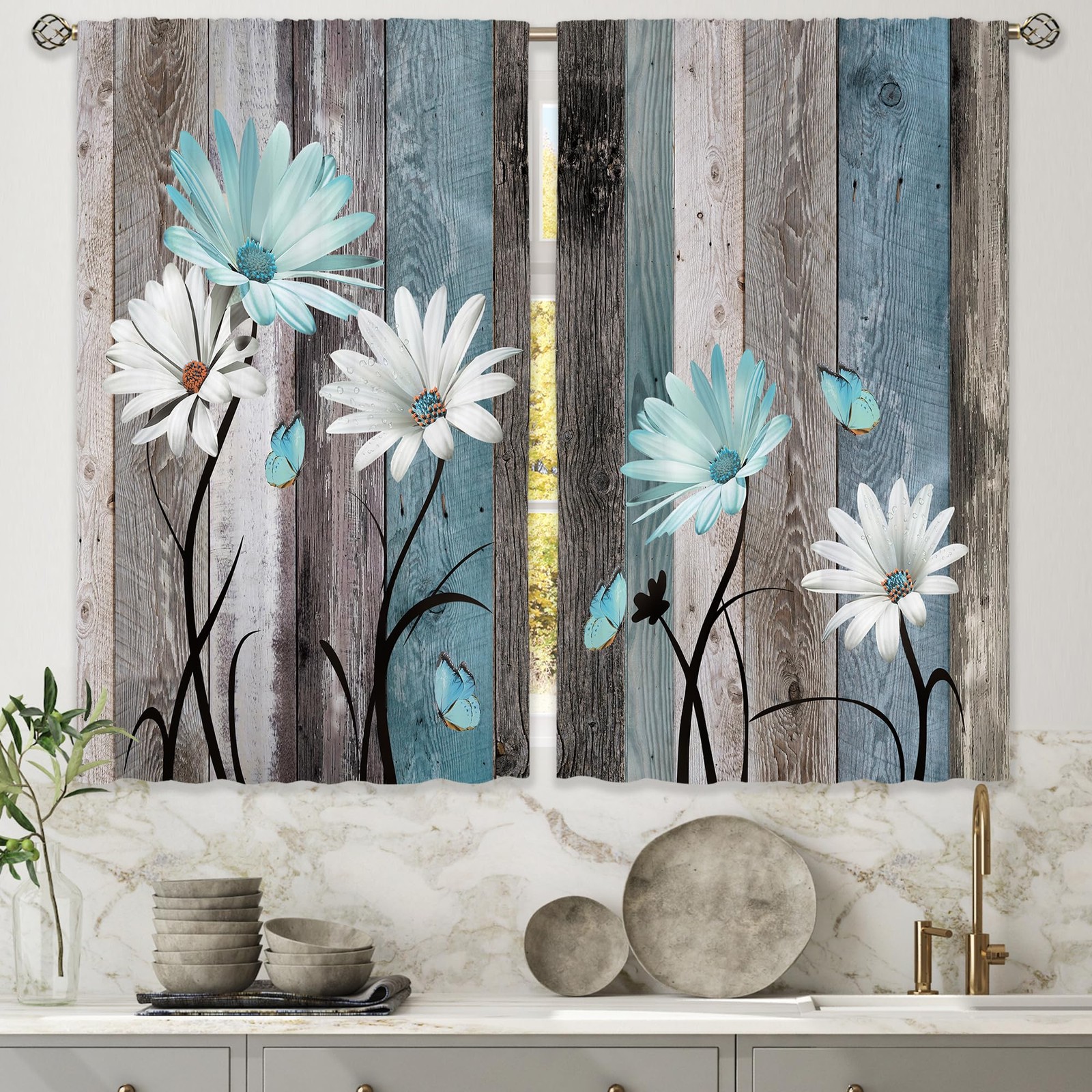Laifzere Teal Farmhouse Daisy Kitchen 26W x 30L Pack of 2 , 07 teal daisy