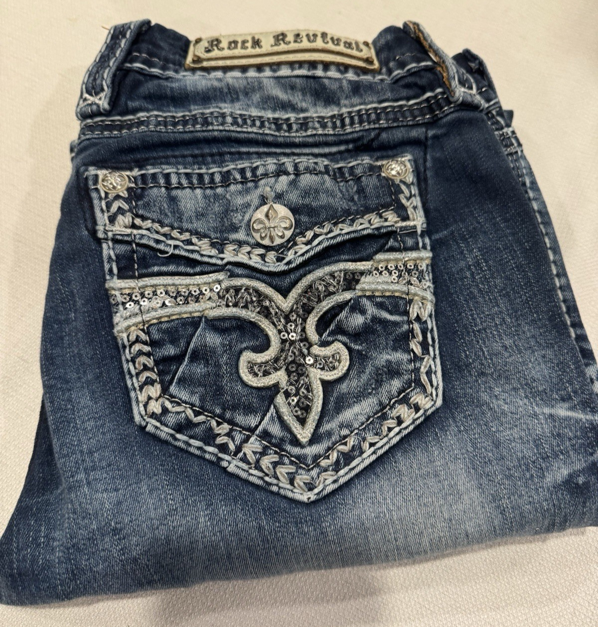 Rock Revival Cherilyn Mid Rise Boot Women's Denim Embellished Jeans Size 29