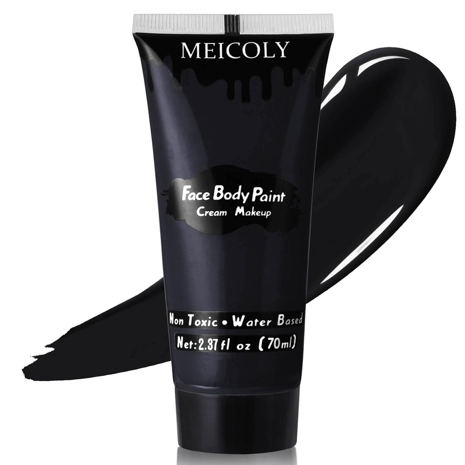 Black Cream Face Body Paint, 2.37Oz Large Tube Water Based Clown Black Makeup,Bo