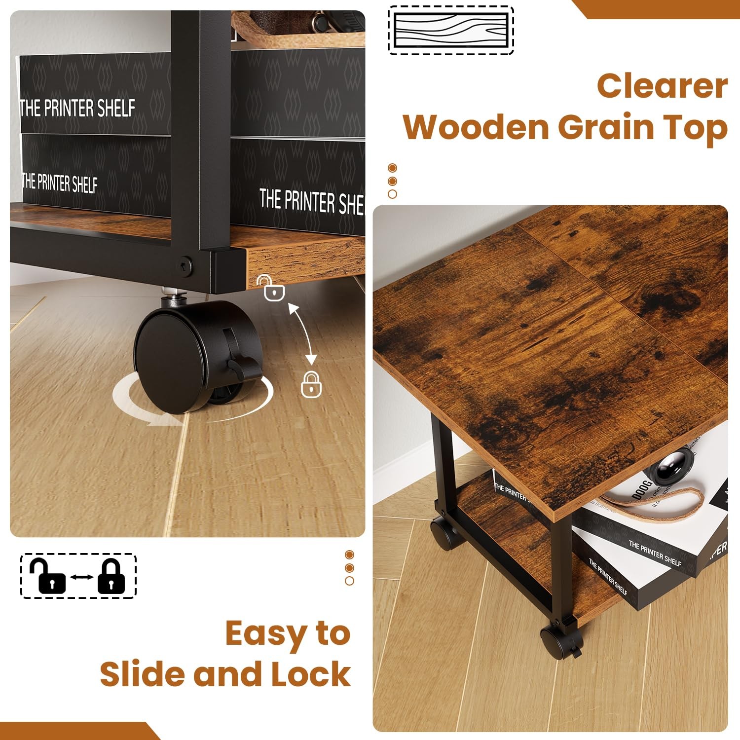 2-Tier Printer Stand with Wheels Charging Station for Home Office